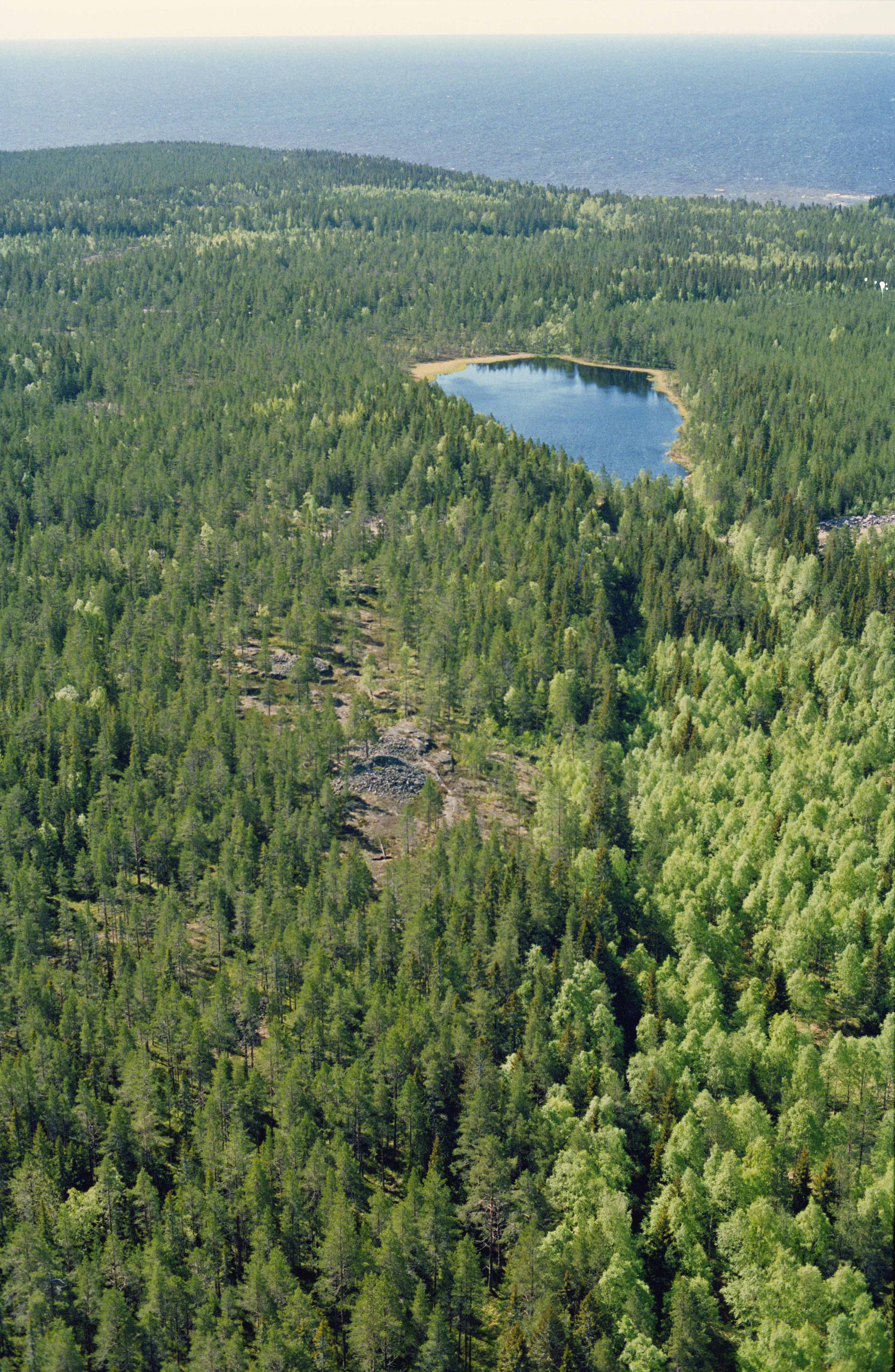 Beskrivning: Området Sunnansjömyran med gravrösen norr om Lill-Abborsjön (skrivs även Lillabborrsjön). Under bildens mitt rösen RAÄnr Hörnefors 1:1, 2:1, 3:1, 4:1-4 m.fl. Bilden är tagen mot (väderstreck): SSV