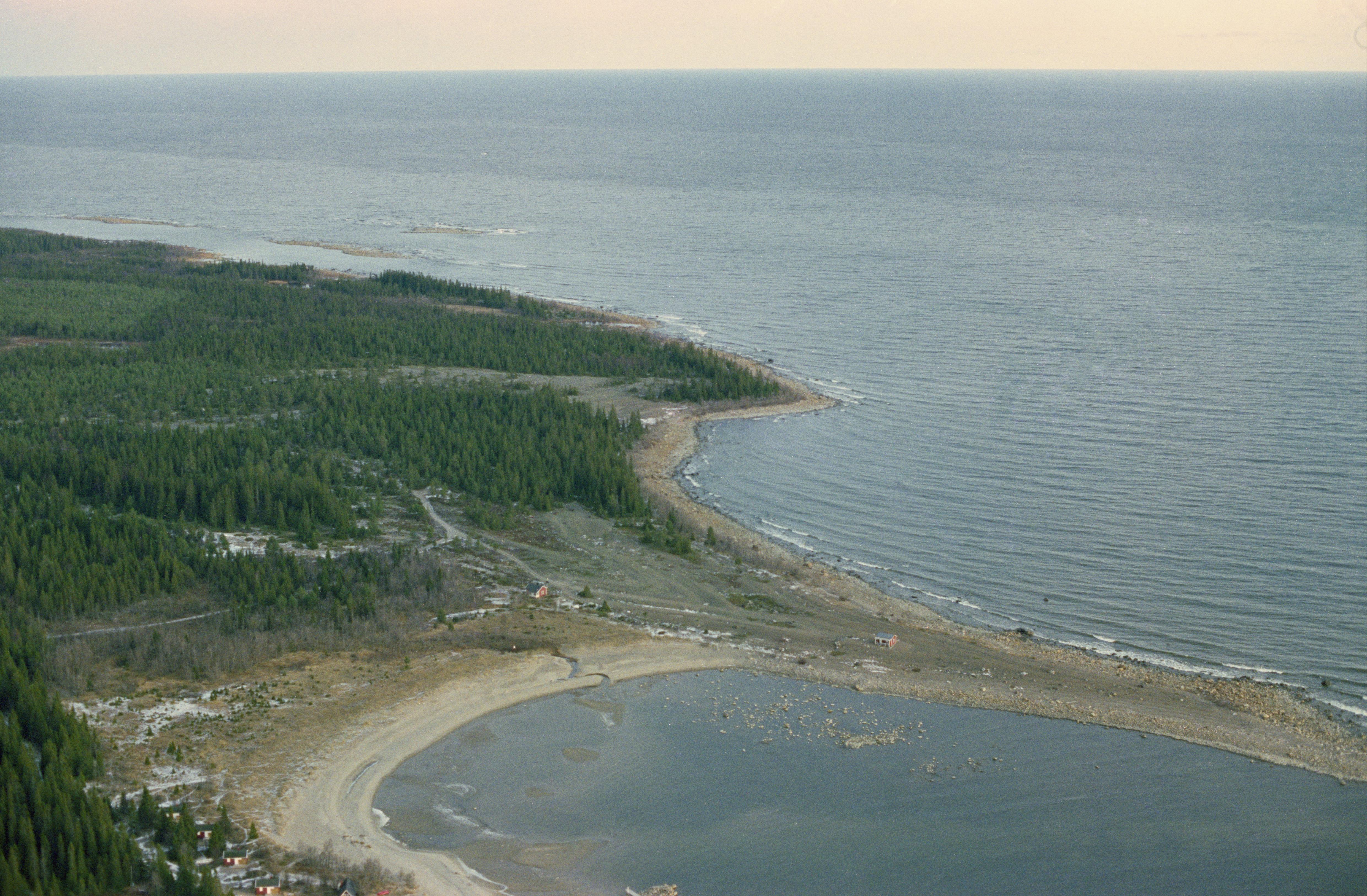 Beskrivning: Området Grundskatan i sydöstra delen av udden Bjuröklubb. I bildens vänstra kant Grundskataräften och ett fornlämningsområde med fiskeläge, gravfält och labyrint RAÄnr Lövånger 78:1-2. Bilden är tagen mot (väderstreck): NO
