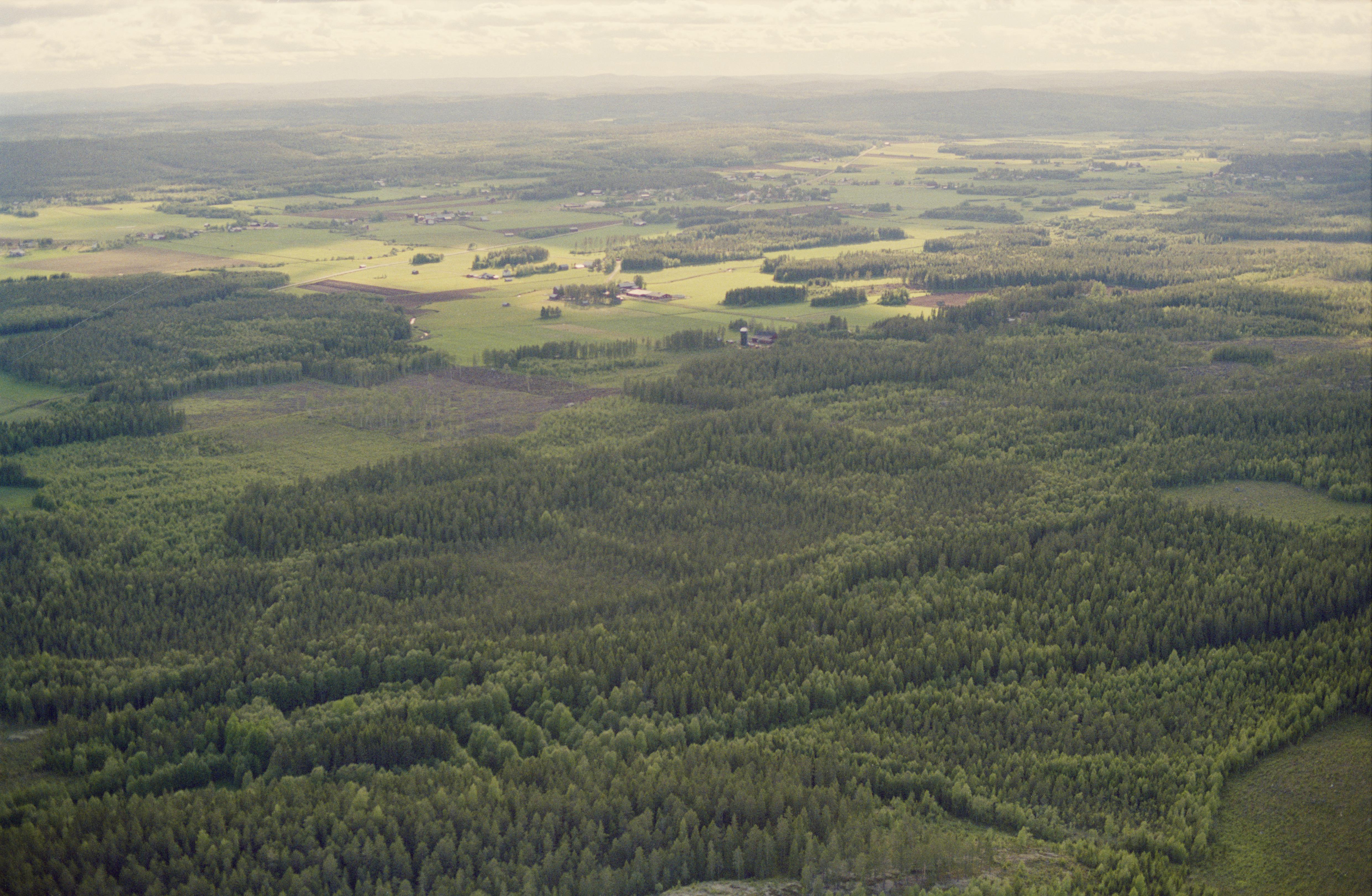 Beskrivning: Dalgångsbygd med åarna Flarkån, Flarkbäcken och Storbäcken. I skogen nere till vänster stensättning RAÄnr Nysätra 74:1. Över bildens mitt gården Storbäcken vid Flarkbäcken, I bildens övre del Åbyn, Flarkens kyrkby och området Brännan. Bilden är tagen mot (väderstreck): NV