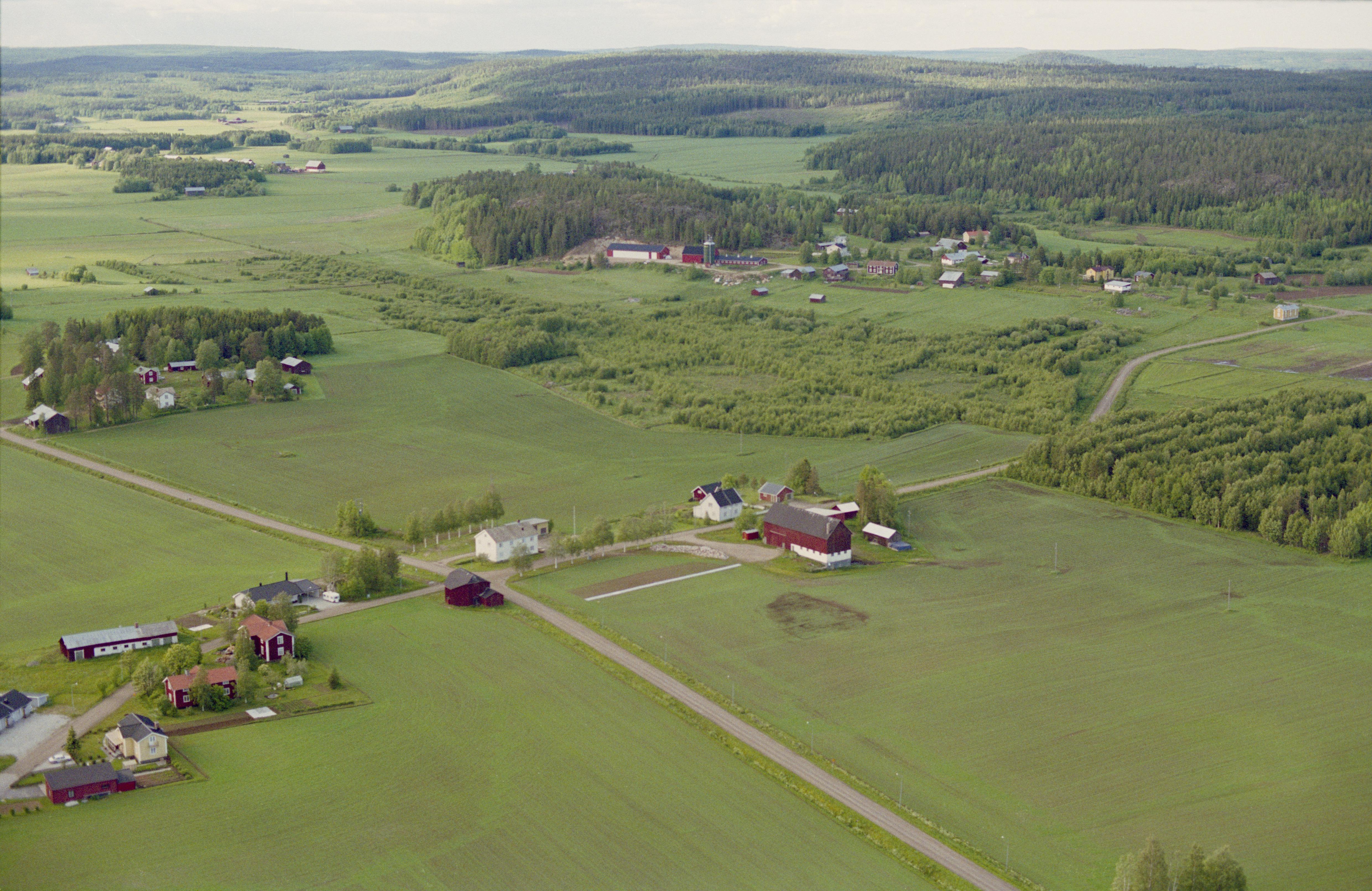 Beskrivning: Dalgångsbygd med åarna Flarkån, Flarkbäcken och Storbäcken. I bildens nedre del området Brännan norr om kyrkbyn Flarken. Uppe till höger Torrberget och Ö. Skalsberget med boplatser RAÄnr Nysätra 80:1 och 203:1. Bilden är tagen mot (väderstreck): N