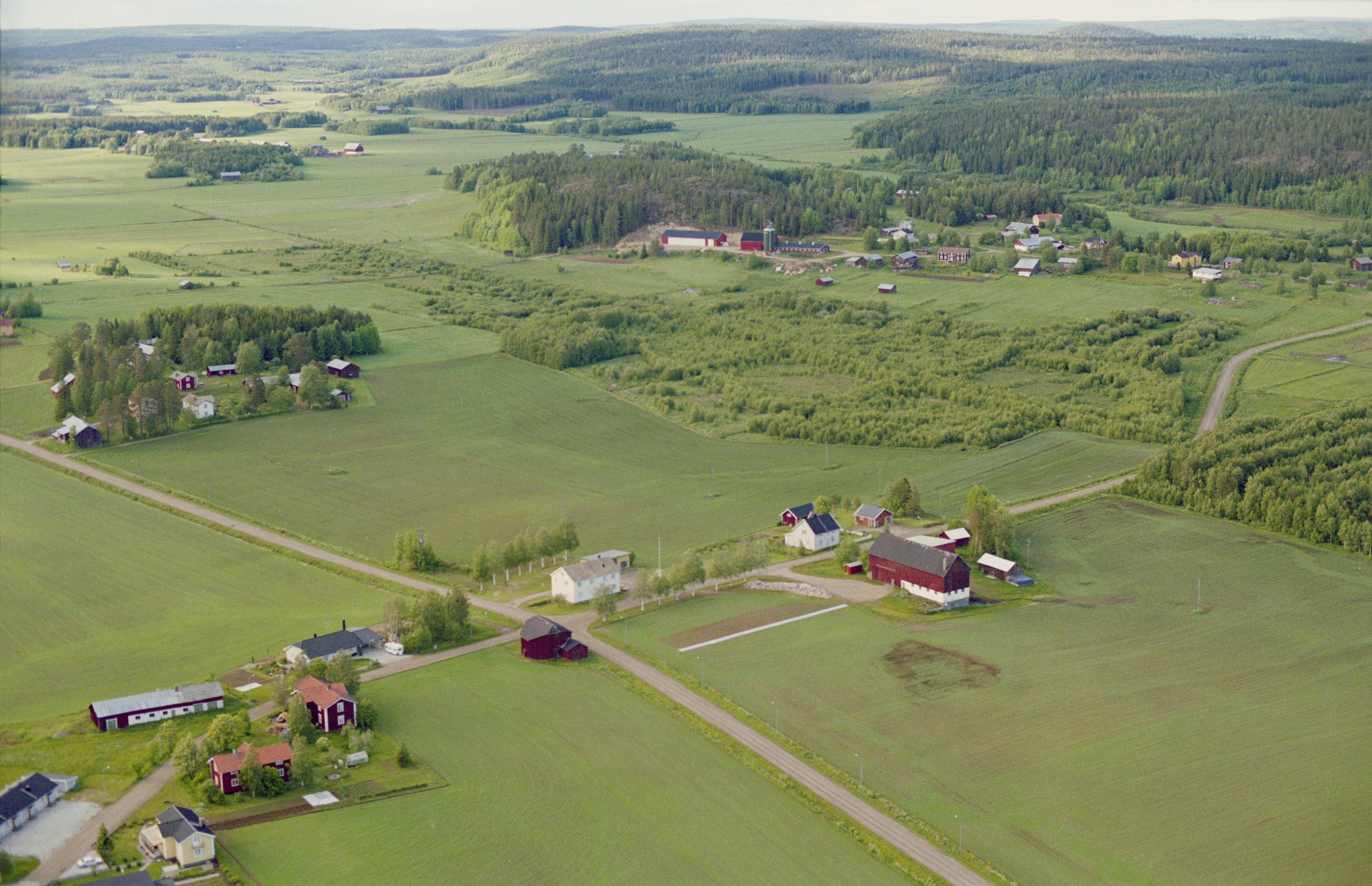 Beskrivning: Dalgångsbygd med åarna Flarkån, Flarkbäcken och Storbäcken. I bildens nedre del området Brännan norr om kyrkbyn Flarken. Uppe till höger Torrberget och Ö. Skalsberget med boplatser RAÄnr Nysätra 80:1 och 203:1. Bilden är tagen mot (väderstreck): N