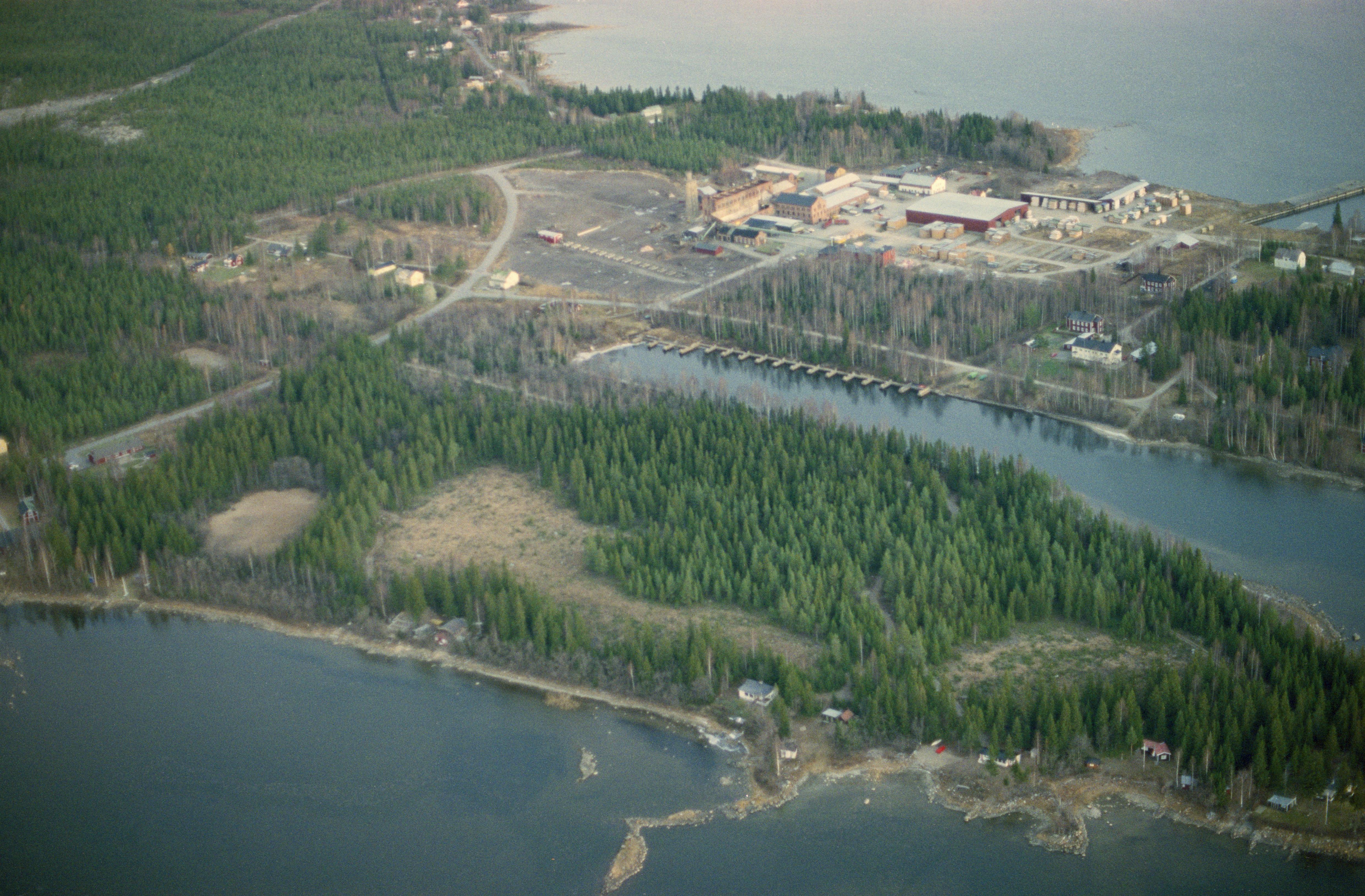 Beskrivning: Örvikens inustriort och sågverkssamhälle på Degerö mellan Ytterviksfjärden (i bildens nedre kant) och Sörfjärden (i bildens övre kant). Uppe till höger sågverk / träindustri på Mittiörudden. Bilden är tagen mot (väderstreck): N