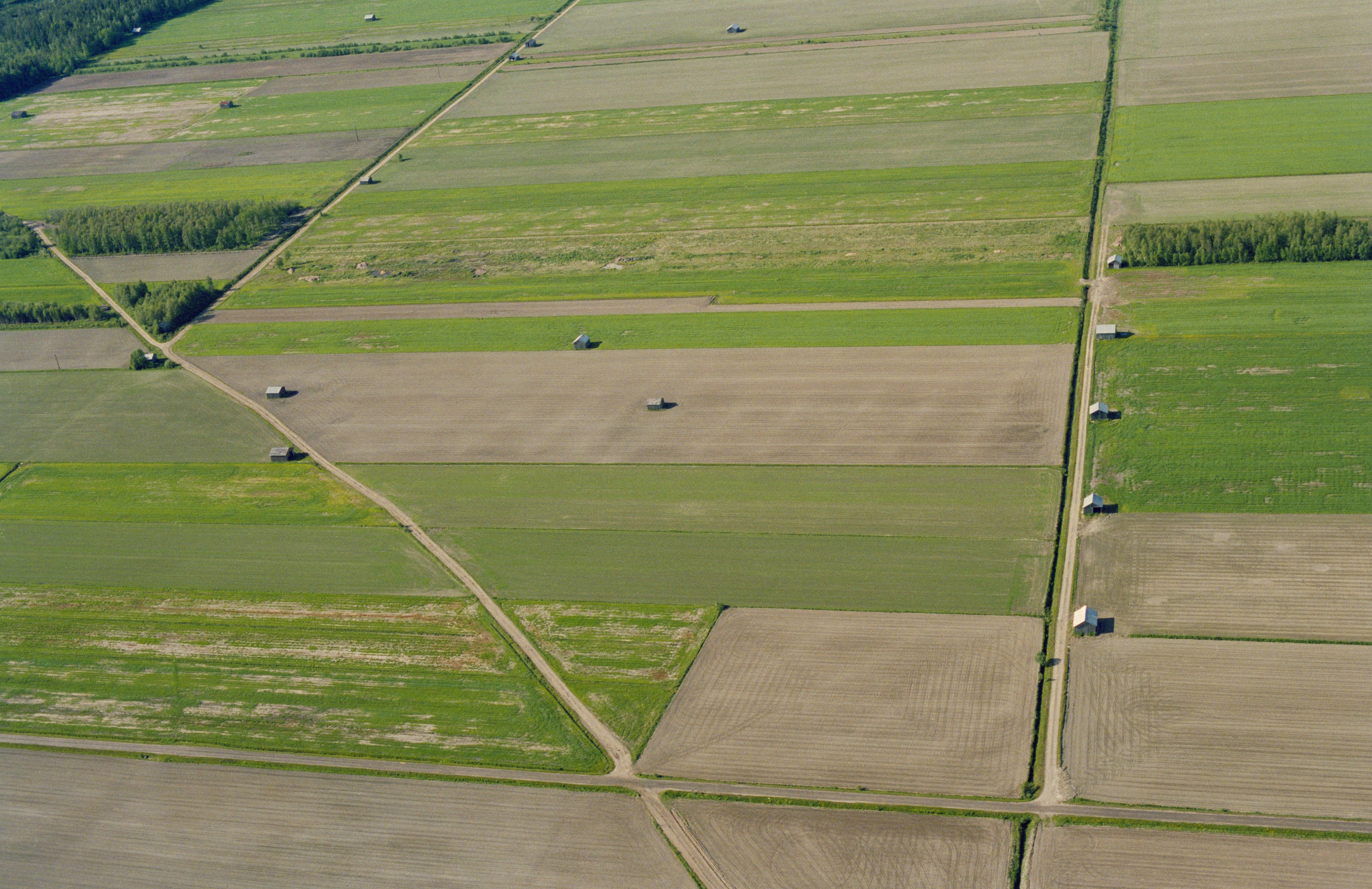 Beskrivning: Odlingsområdet Röbäcksslätten med ängslador, sydost om tätorten Röbäck och väster om Umeå flygplats. Bilden är tagen mot (väderstreck): NNV