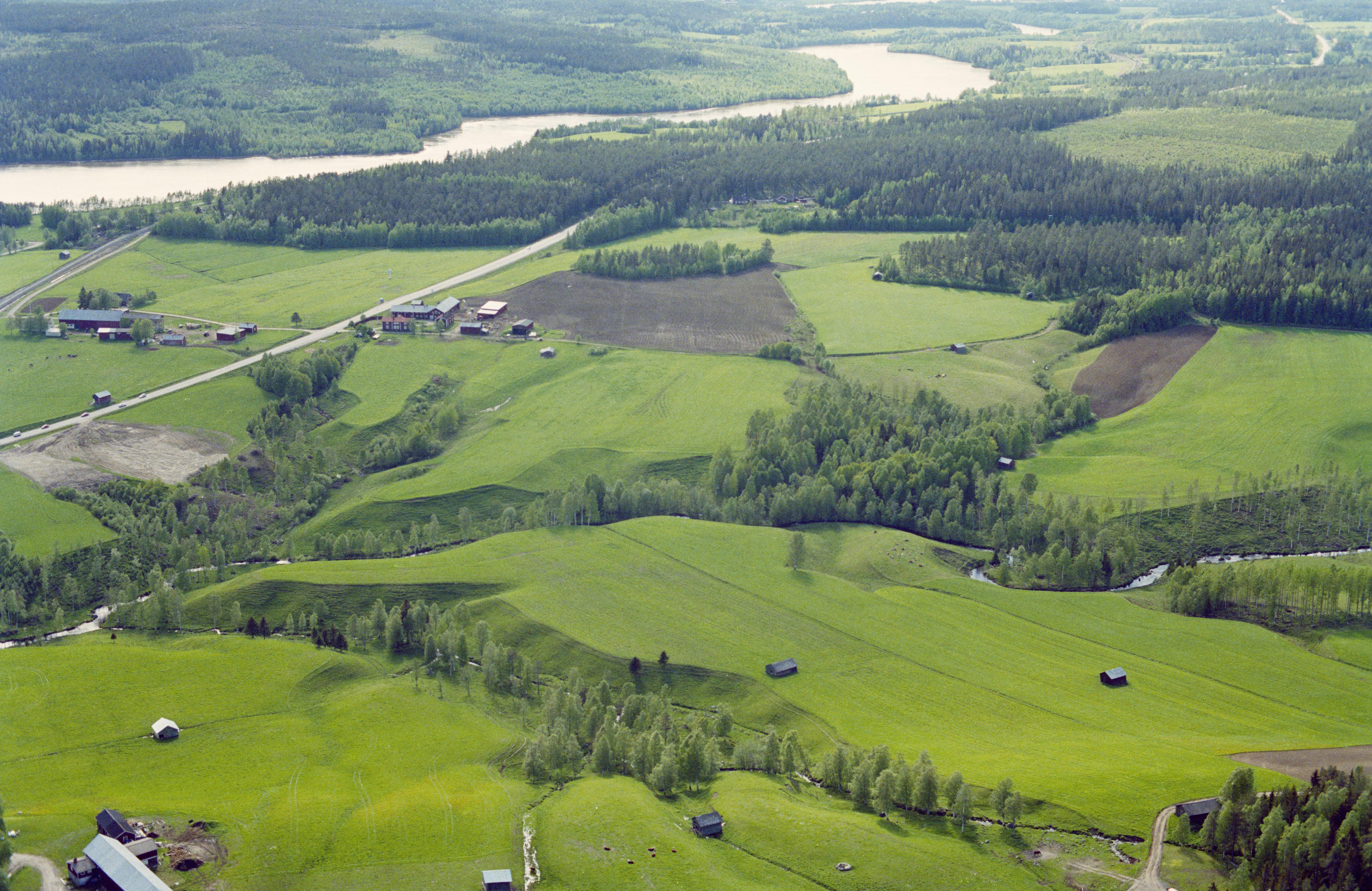 Beskrivning: I bildens nedre del Norrfors by i Umeälvens dalgång. Under bildens mitt bytomt RAÄnr Umeå socken 339. Vännäs socken uppe i bildens vänstra hörn. Bilden är tagen mot (väderstreck): V