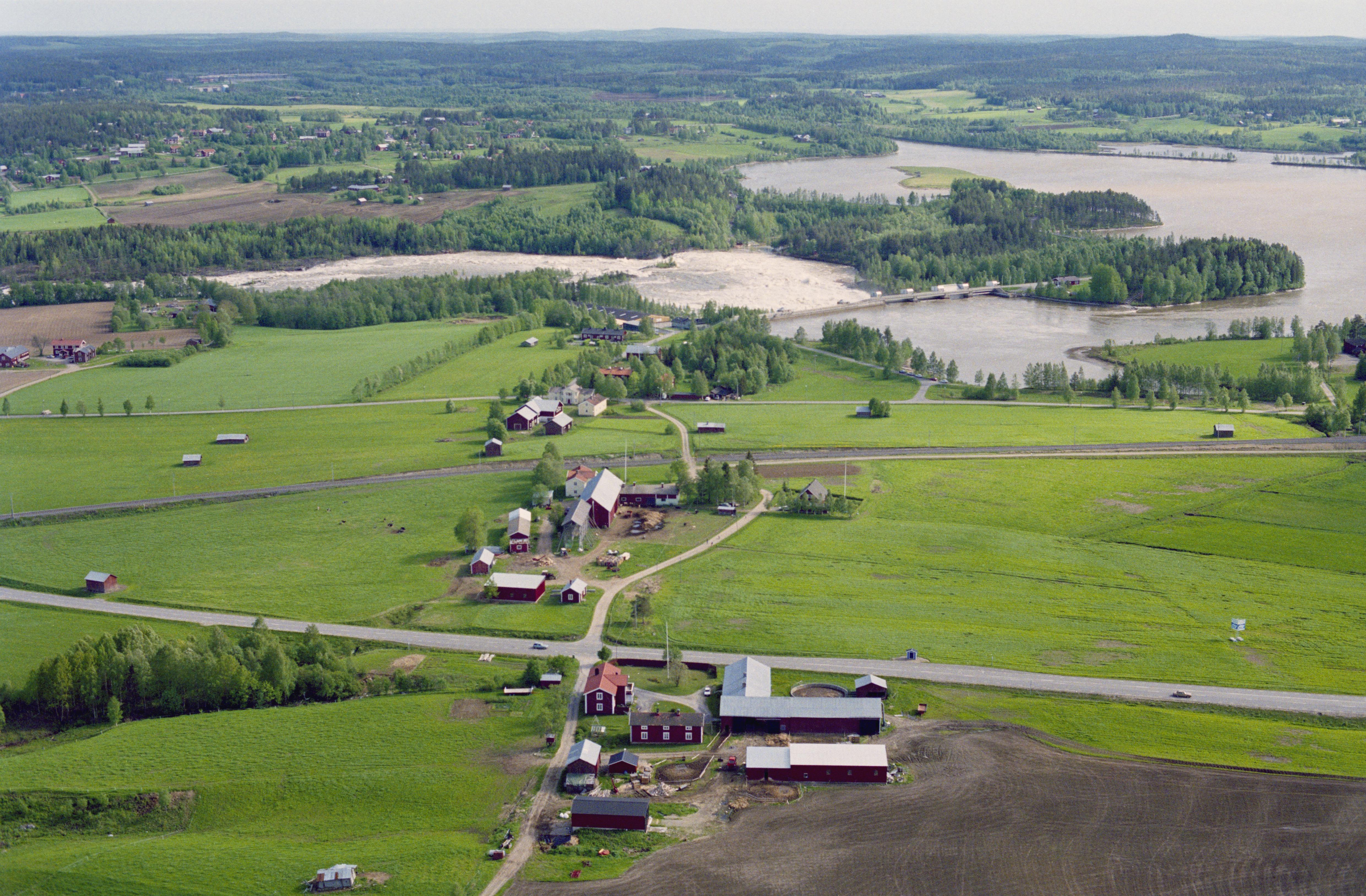 Beskrivning: Umeälvens dalgång vid Norrfors by. Vid bildens mitt boplats RAÄnr Umeå stad 226:1. I bildens övre del Norrforsen och Stornorrfors kraftverk i Umeälven med hällristningsområdet Truthällorna RAÄnr Umeå stad 365:1. Bilden är tagen mot (väderstreck): S