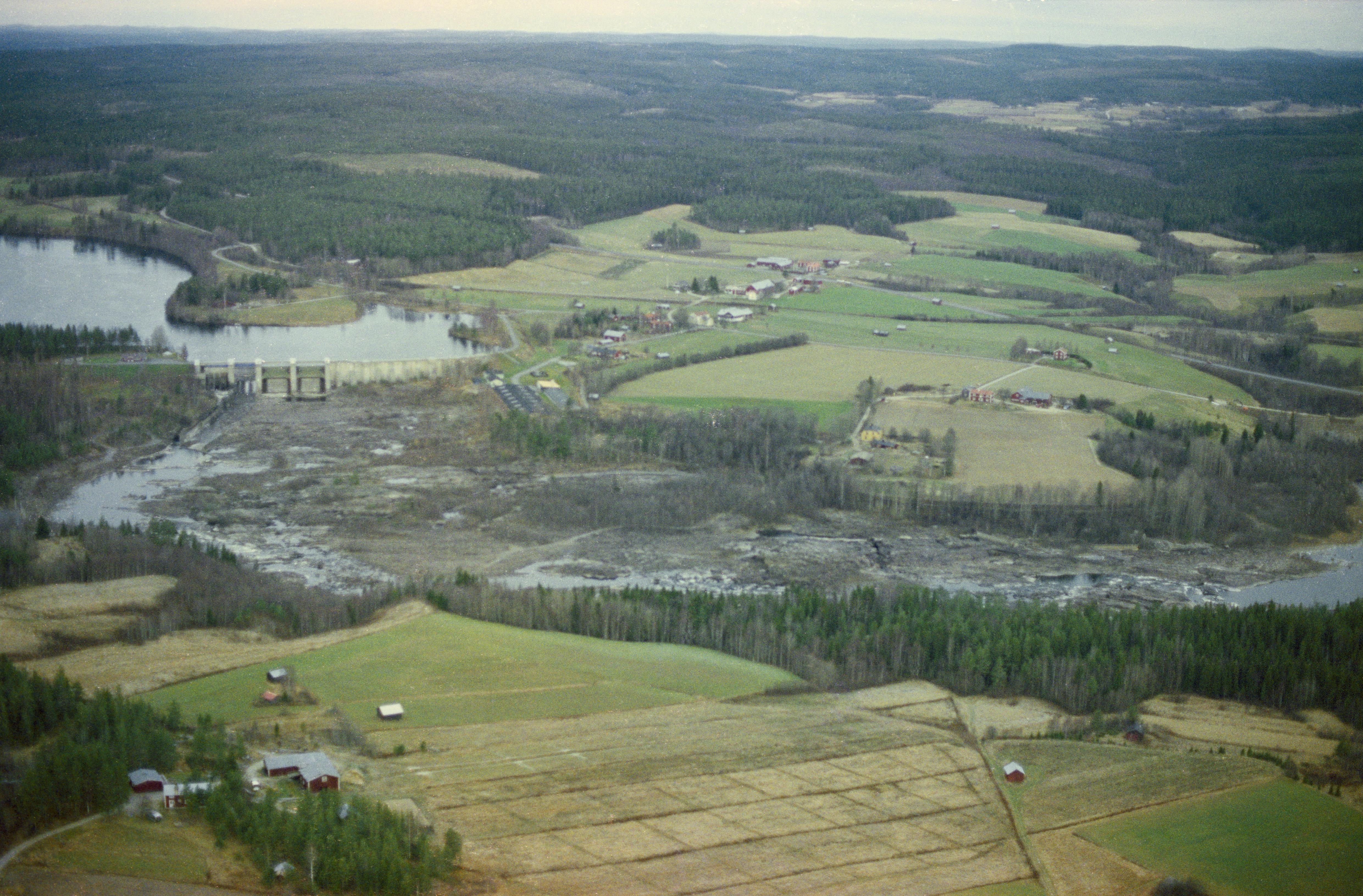 Beskrivning: Norrforsen och Stornorrfors kraftverk mellan byarna Sörforsen och Norrforsen i Umeälvens dalgång. Vid älvkanten över bildens mitt hällristningsområdet Truthällorna RAÄnr Umeå stad 365:1. Norrfors by i bildens övre del. Bilden är tagen mot (väderstreck): NV
