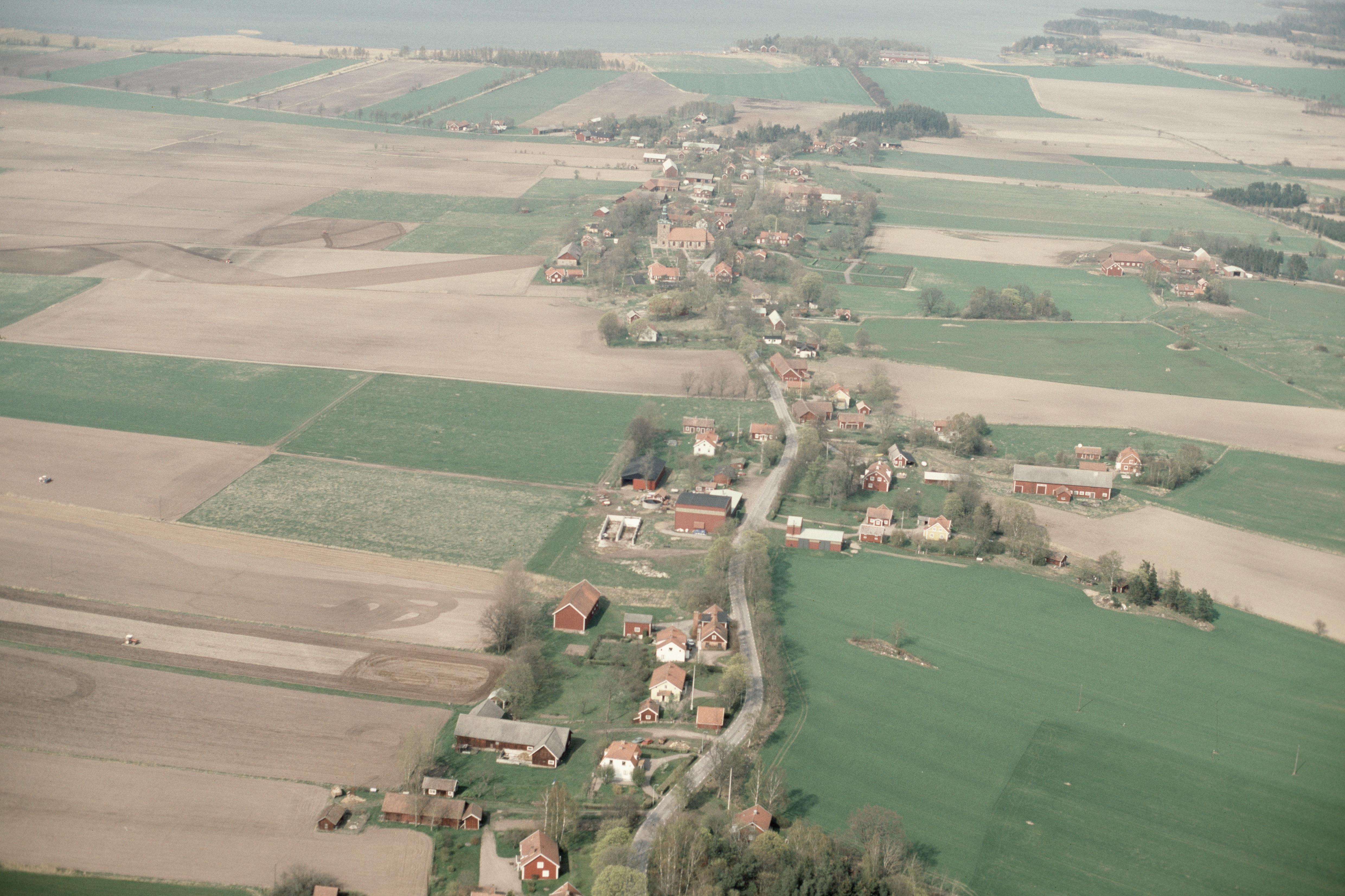 Beskrivning: Björsäters kyrka i bildens övre del. Bilden är tagen mot (väderstreck): NO