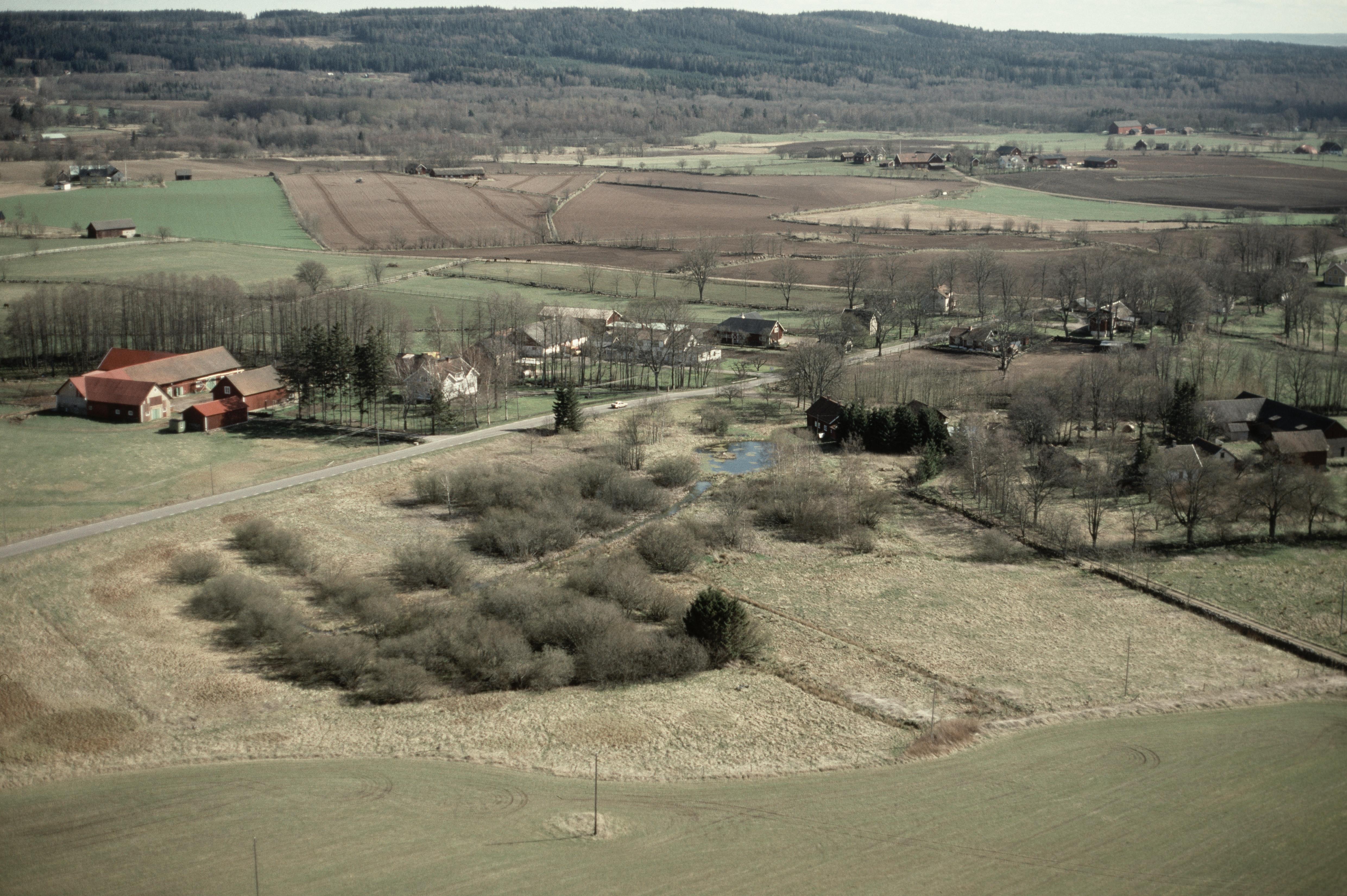 Beskrivning: Bolums by. Korsgården, Uddagården och Samuelsgården, Vid bildens mitt ödekyrkogård RAÄnr Bodum 52:1 och bytomt Bolum 193:1. Bilden är tagen mot (väderstreck): SO