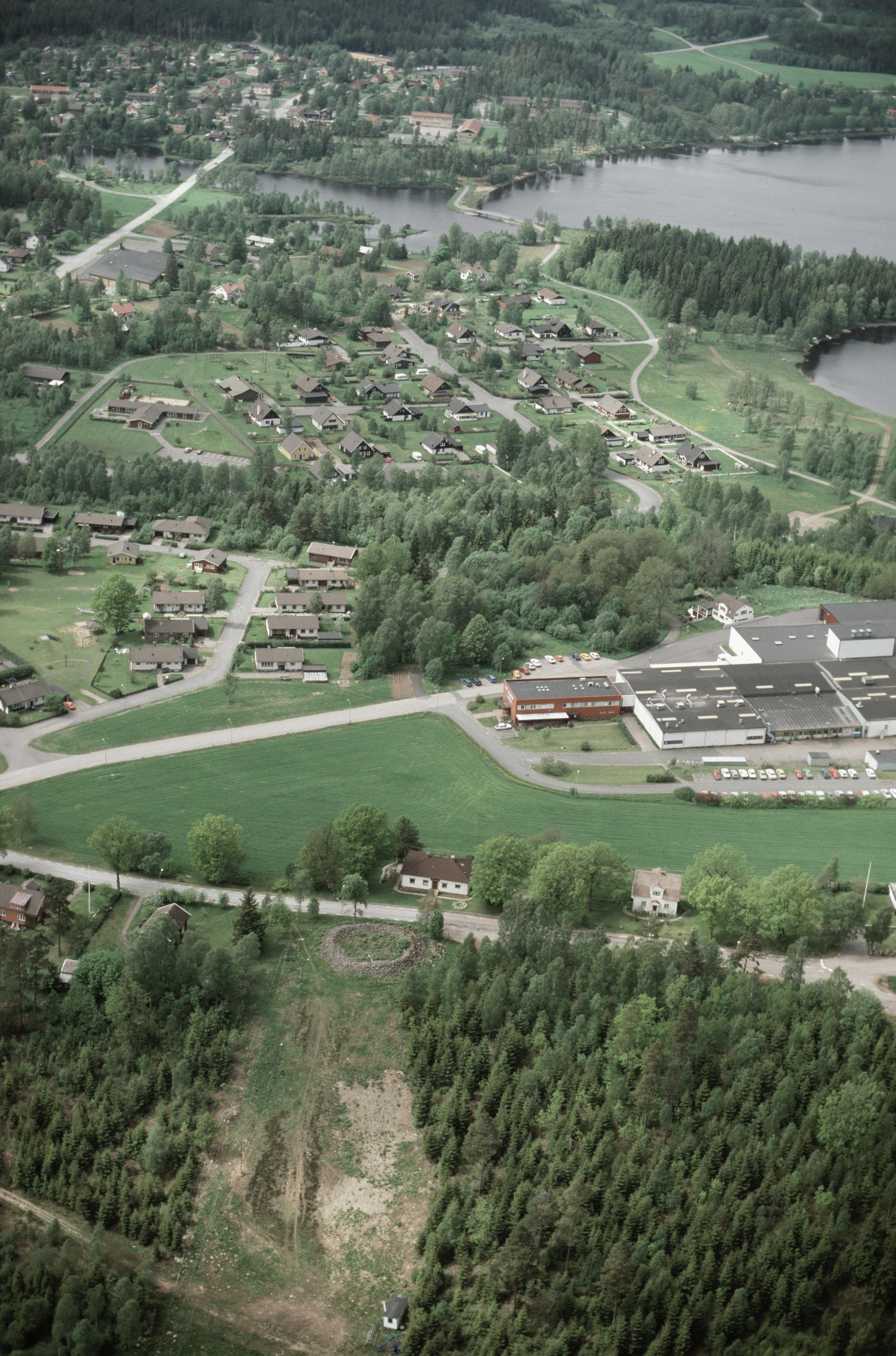 Beskrivning: Dalstorps tätort och kyrkby vid Dalstorpasjön. Röset Högarör RAÄnr Dalstorp 54:1 under bildens mitt. Bilden är tagen mot (väderstreck): VNV