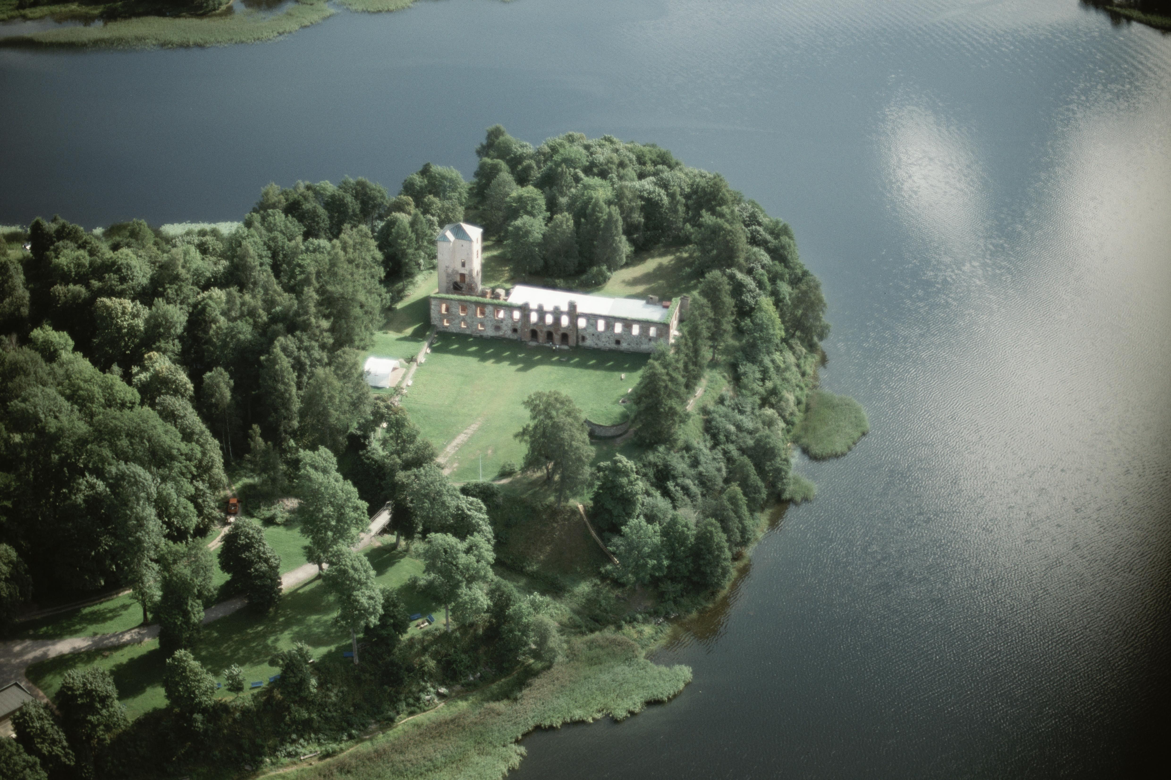 Beskrivning: Gräfsnäs slottsruin RAÄnr Erska 21:1-2 vid Gräfsnäsviken. Bilden är tagen mot (väderstreck): SO