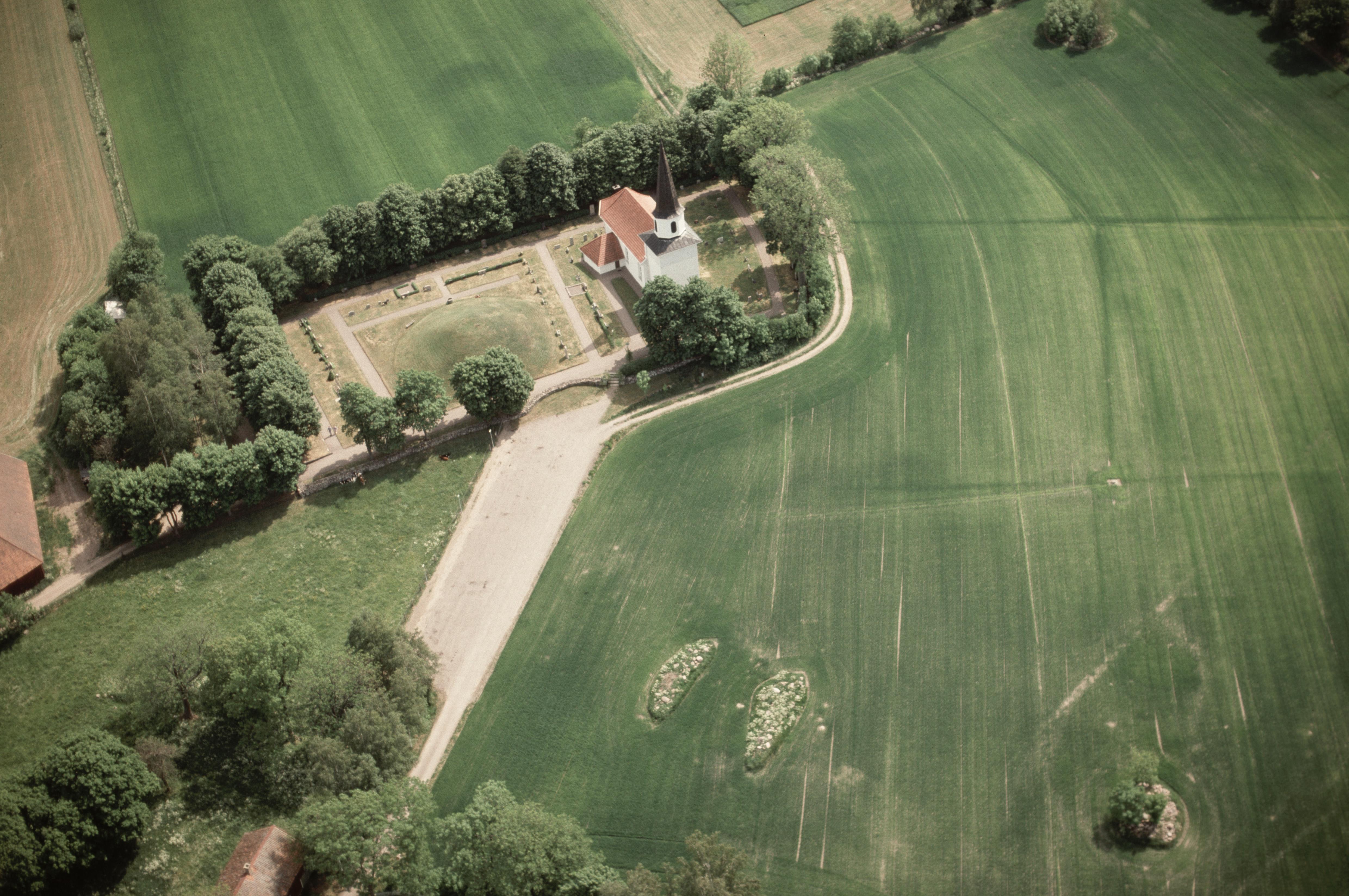 Beskrivning: Storhögen "kung Ranes hög" RAÄnr Flistad 12:1 vid Flistads kyrka. Bilden är tagen mot (väderstreck): OSO