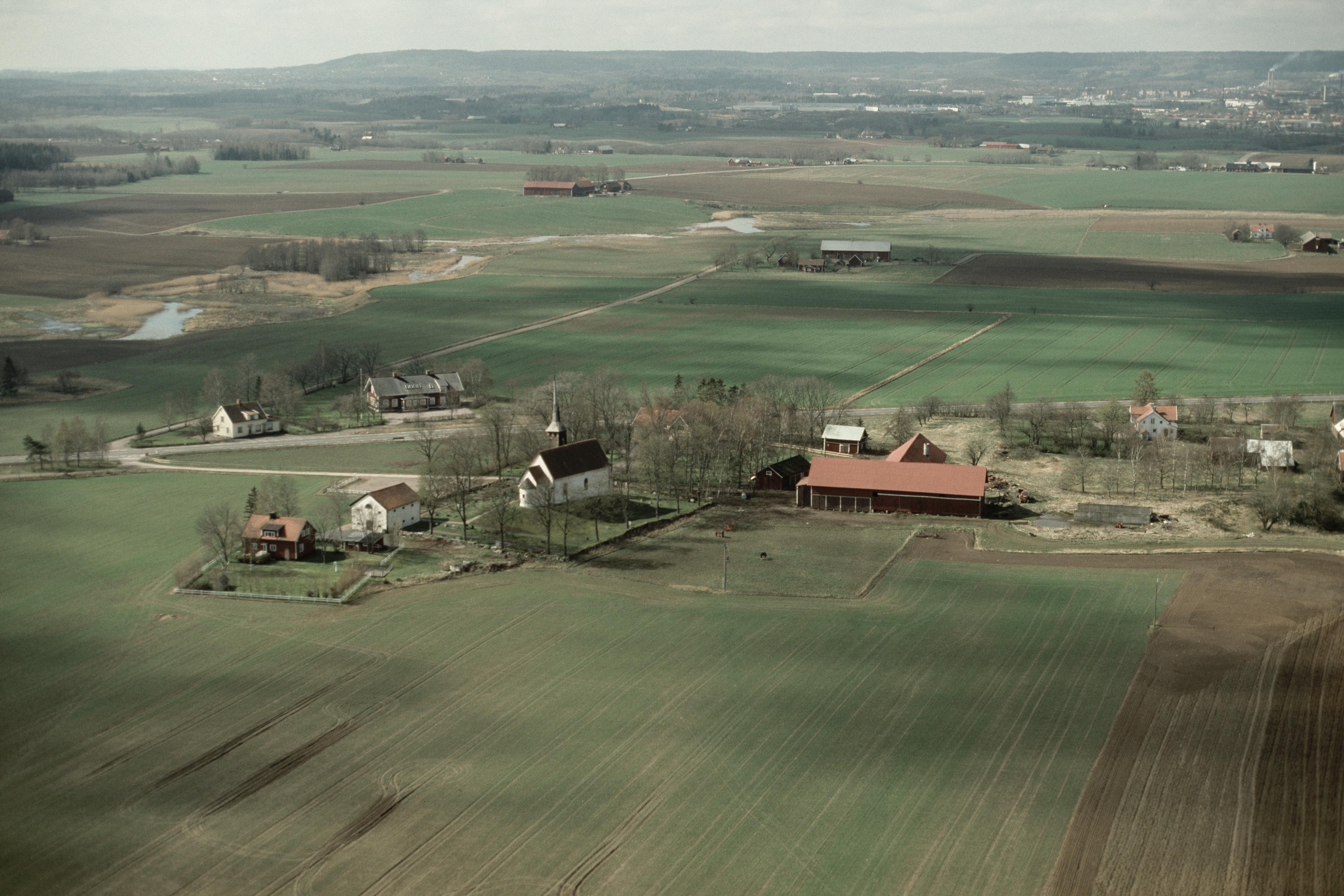 Beskrivning: Forsby kyrka, kyrkby och sockenmagasin. Kyrkan står på gravhög RAÄnr Forsby 48:1. Bilden är tagen mot (väderstreck): SV