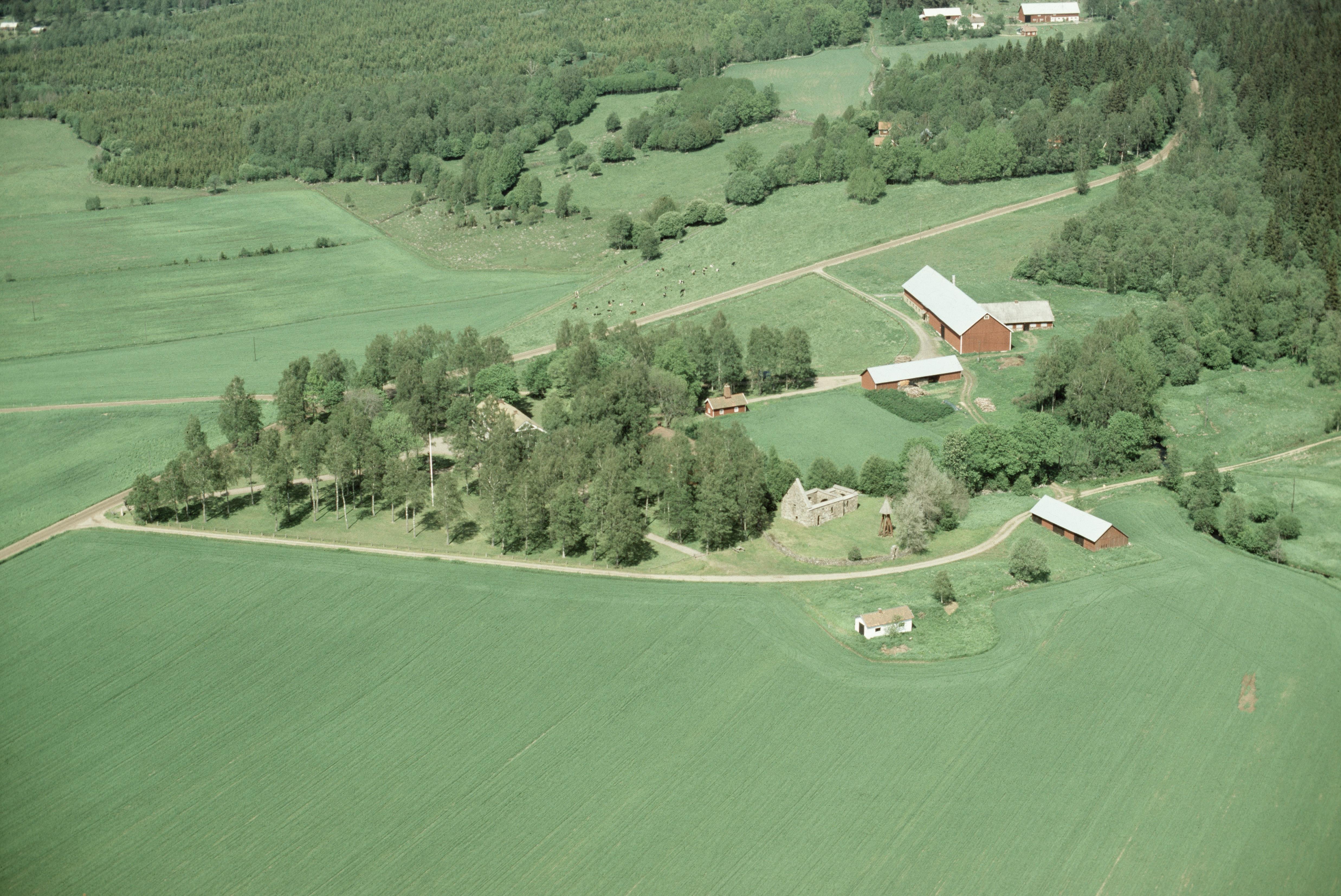 Beskrivning: Beskrivning: Fänneslunda kyrkoruin och begravningsplats RAÄnr Fänneslunda 5:1-2 vid bildens mitt. Bilden är tagen mot (väderstreck): NNO Fotosyfte: Flygbildsdokumentation
