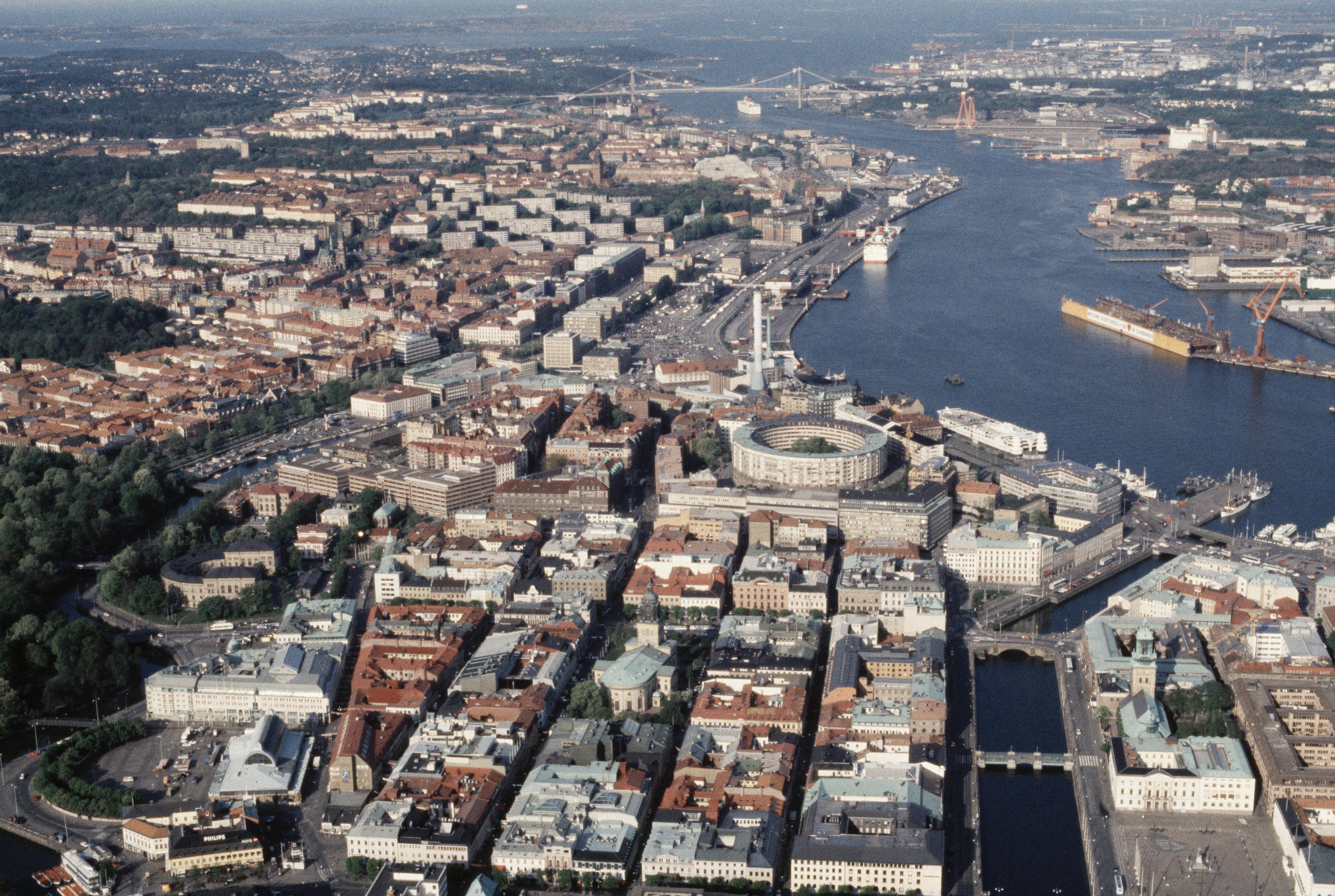 Beskrivning: Anmärkning (övrig): Riksintresse-nr/namn: O2:1 - Göteborgs innerstad. Socken: Göteborg. Motivering: Storstadsmiljö, formad av funktionen som "Sveriges port mot väster" och det för sjöfart, handel och försvar strategiska läget vid mynningen av Göta älvs vattensystem. Rikets främsta sjöfartsstad samt residensstad, domkyrko- och universitetsstad, präglad av tre seklers handelsaristokrati. Ett av de förnämsta exemplen på 1600-talets stadsanläggnings- och befästningskonst, och på stadsbyggandet under 1800- och 1900-talen. Den göteborgska byggnadstraditionen med dess olika stadsdelskaraktärer. (Skolstad, Universitetsmiljö, Stiftsstad). - Uttryck för riksintresset: 1600- och 1700-talens fästnings- och kanalstad med b(…) Texten i detta fält har förkortats vid migrering till e-arkivet. Se filbilagan extra.xml för fullständig information under note_archivist. Beskrivning: Göteborgs stad. Inom Vallgraven, Stora Hamnkanalen, Göta älv, Göteborgs domkyrka, Christinae kyrka, Otterhällan, Masthugget, Majorna m.m. Bilden är tagen mot (väderstreck): V Fotosyfte: Flygbildsdokumentation