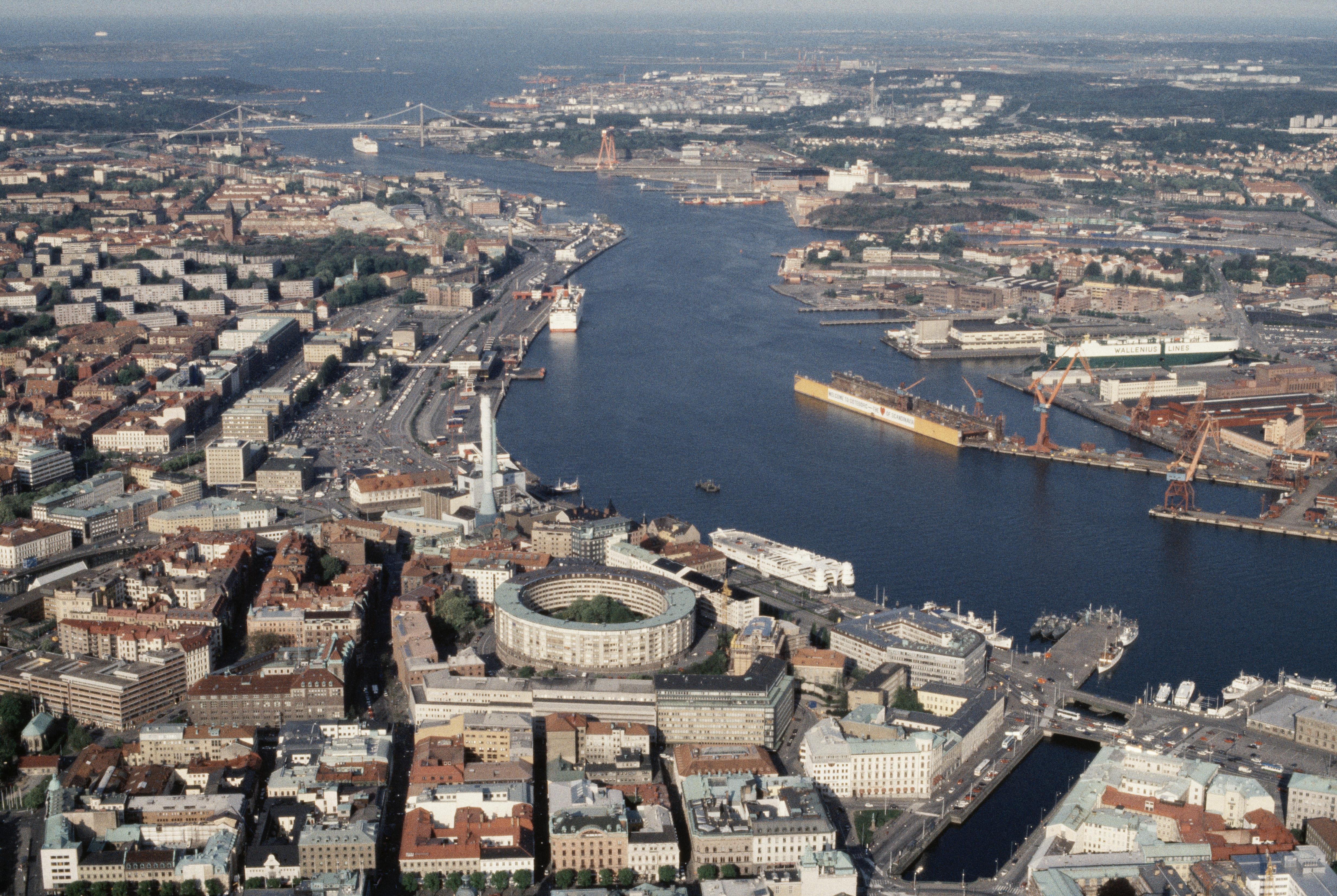 Beskrivning: Göteborgs stad. Inom Vallgraven, Stora Hamnkanalen, Göta älv, Otterhällan, Masthugget, Majorna m.m. Bilden är tagen mot (väderstreck): VNV