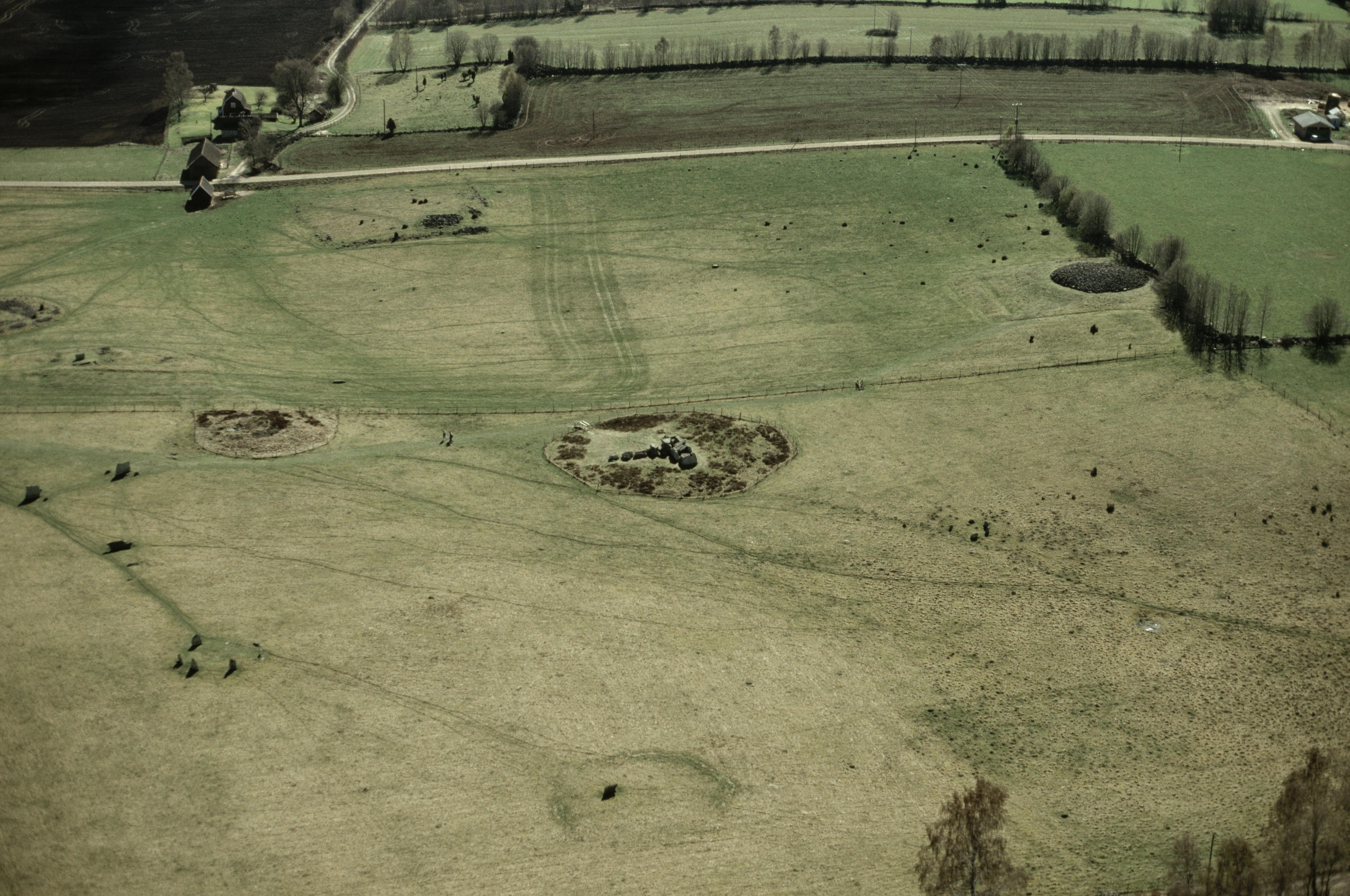 Beskrivning: Gravfält, hällristningar, röse m.m. RAÄnr Hornborga 22:1, 27:1-4, 29:1-3, 31:1-5 (stenkammargrav Gigerugnen / Girommen med hällristningar och stenkrets), 32:1-2 m.fl. Bilden är tagen mot (väderstreck): S