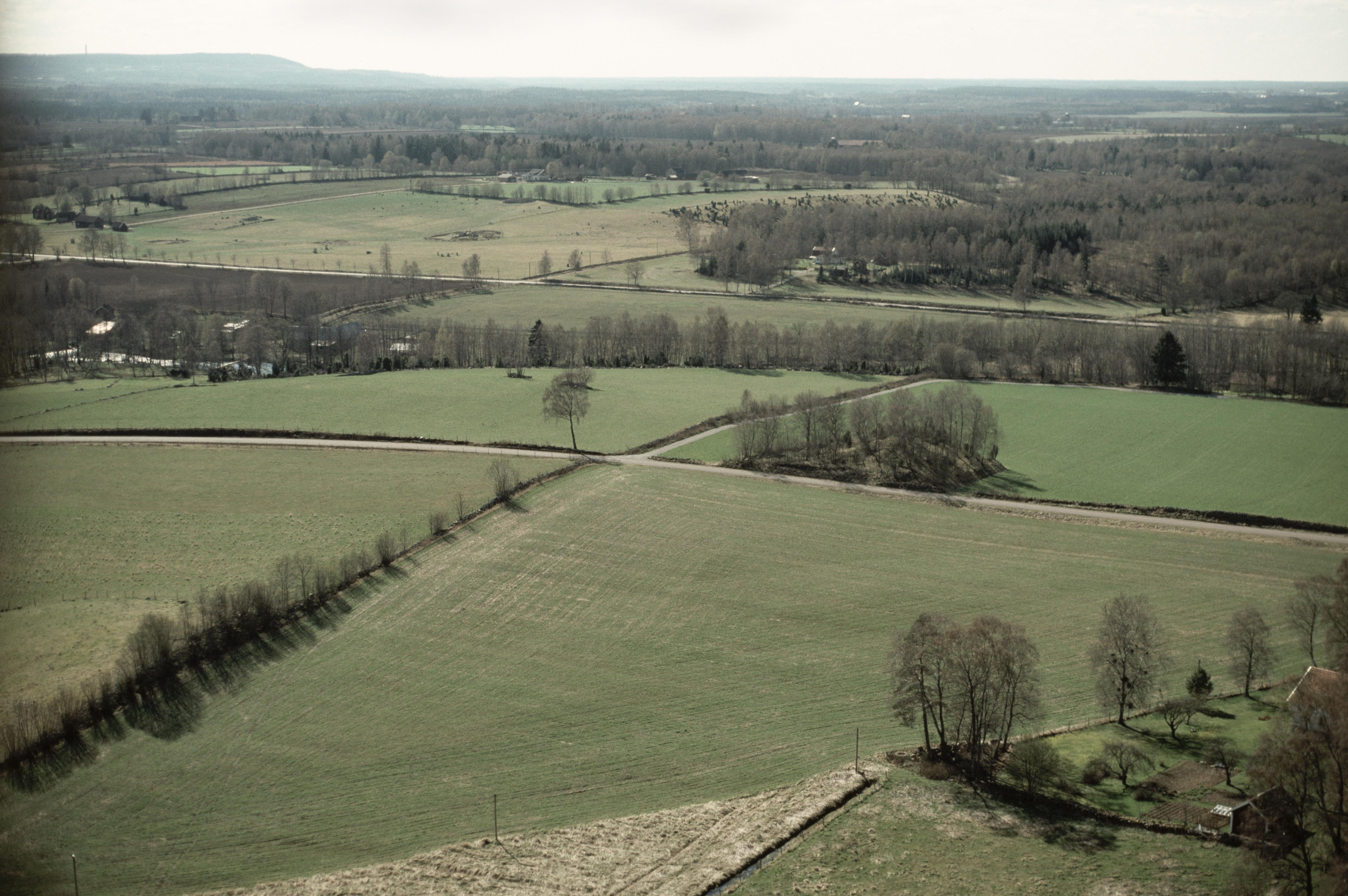 Beskrivning: Åketorp i bildens nedre del. I bildens övre del ån Slafsan (som markerar gränsen mot Hornborga socken) och gravfält RAÄnr Hornborga 22:1, 27:1-4, 29:1-3, 31:1-5 (stenkammargrav Gigerugnen / Girommen) m.fl. Bilden är tagen mot (väderstreck): SV
