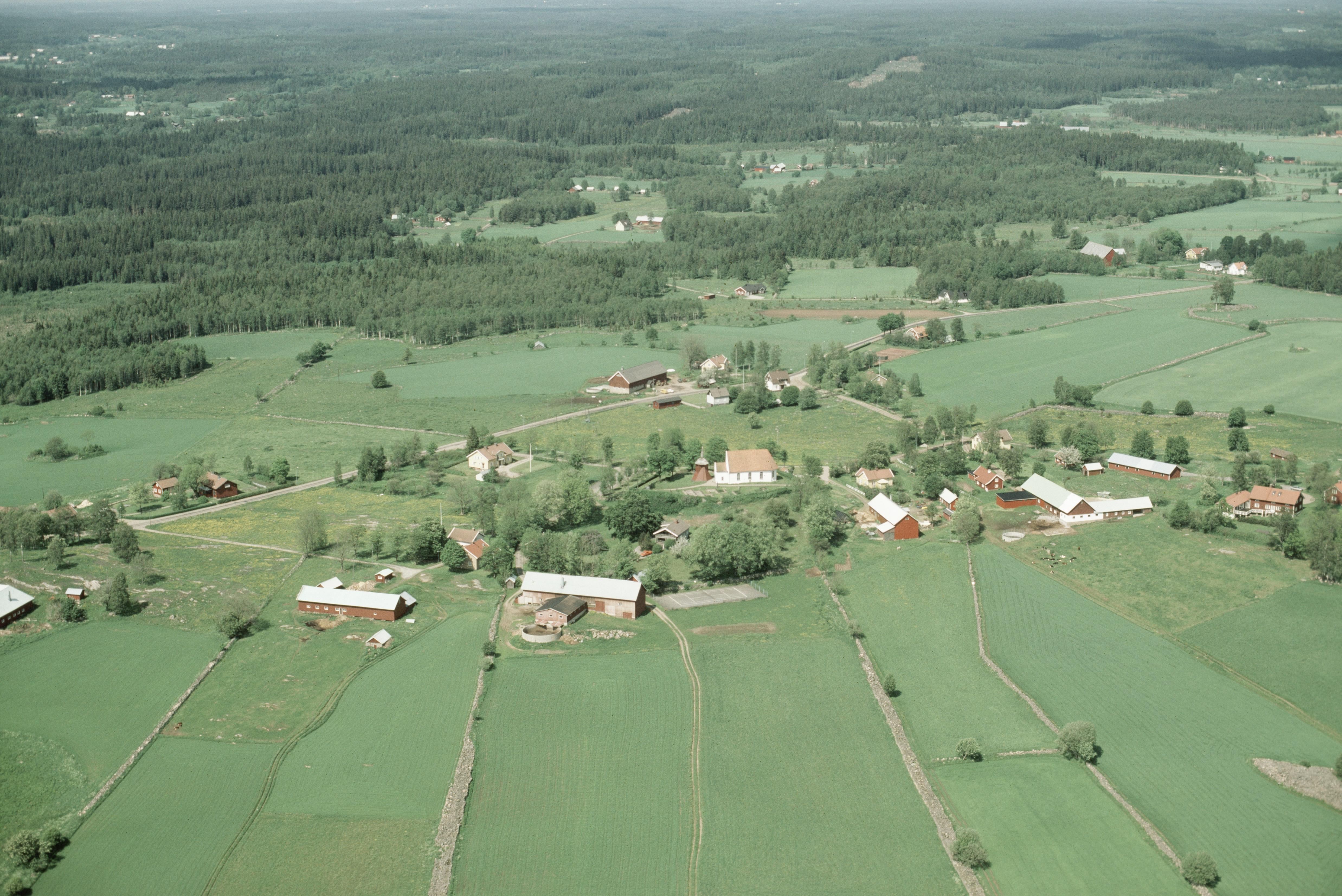 Beskrivning: Härna kyrka och kyrkby. Bilden är tagen mot (väderstreck): N