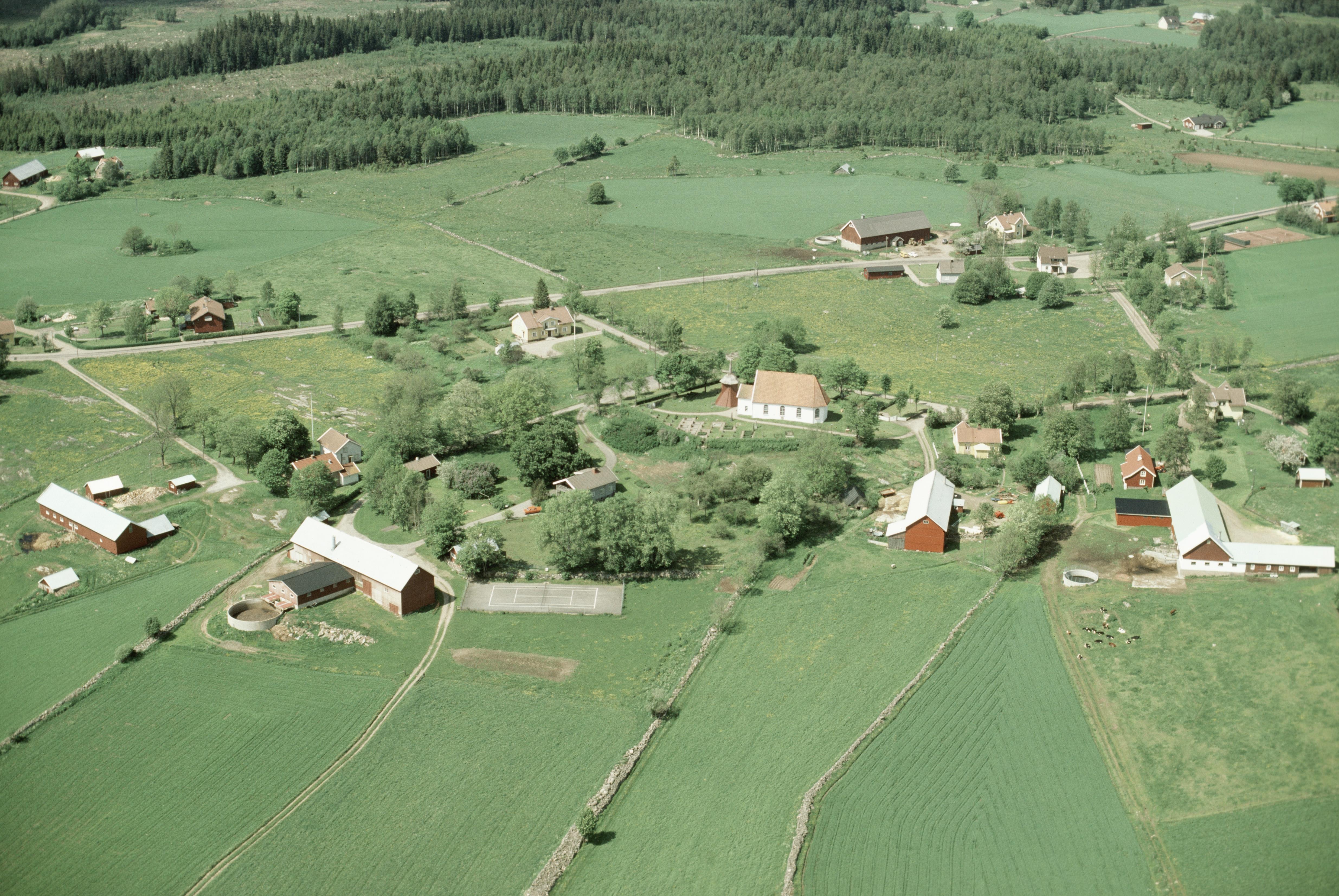 Beskrivning: Härna kyrka och kyrkby. Bilden är tagen mot (väderstreck): N