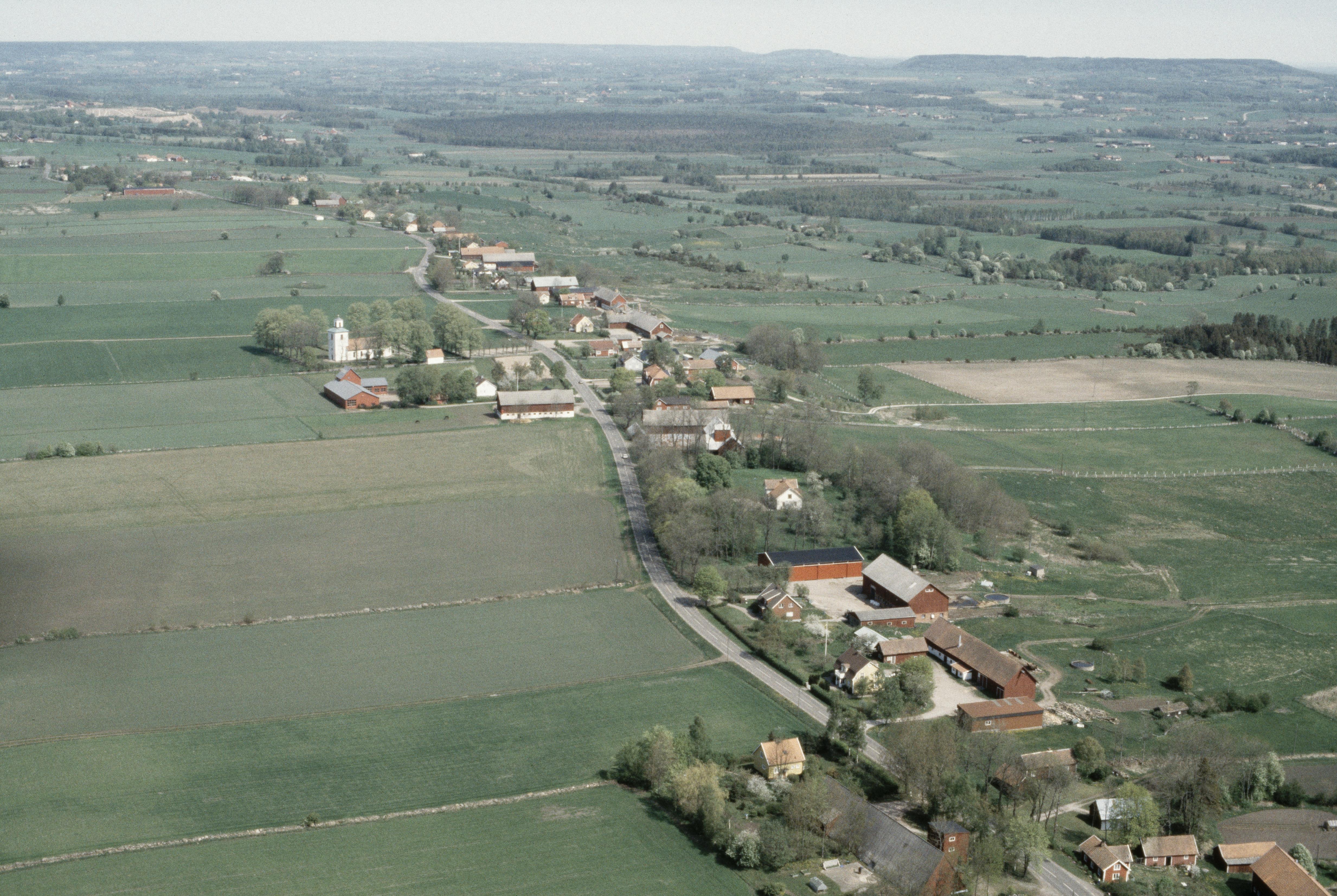 Beskrivning: Karleby kyrka och kyrkby / Karleby långa radby. Gånggrifter, stenkammargravar och hällristningar RAÄnr Karleby 57:1, 58:1-5, 59:1-3 m.fl. Bilden är tagen mot (väderstreck): NNO