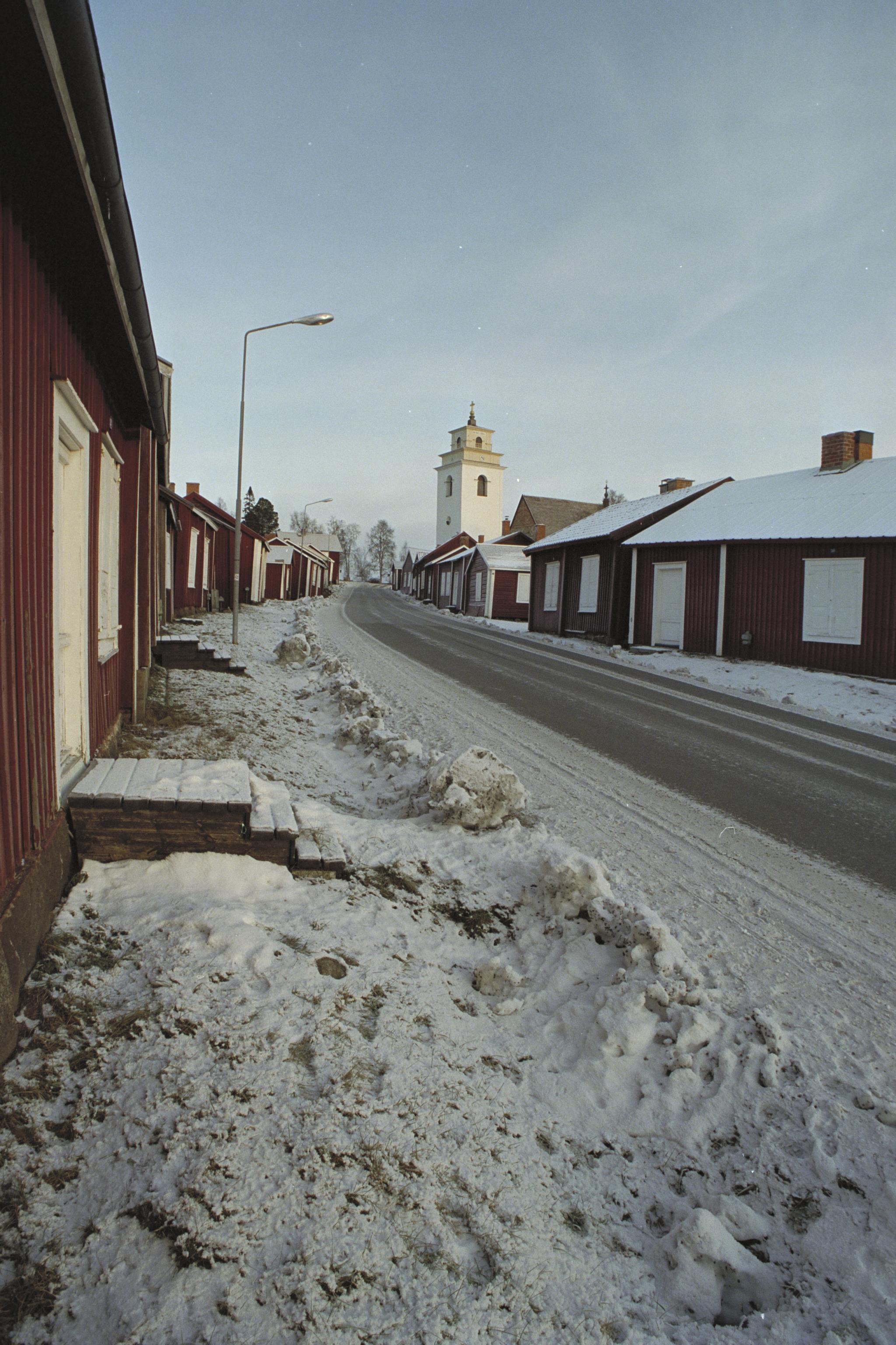 Nederluleå kyrka i bildens mitt.