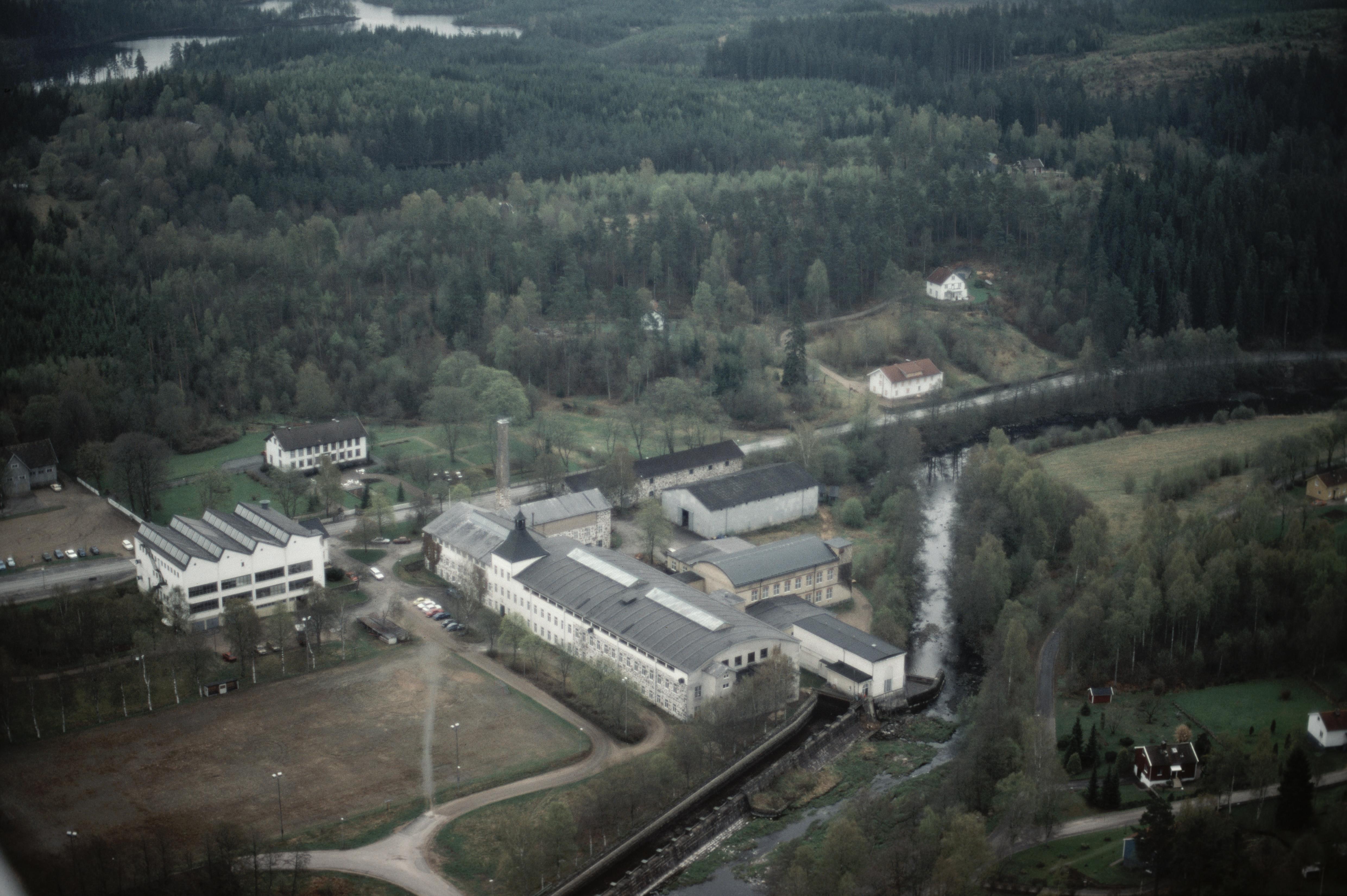 Beskrivning: Rydals bruk i ån Viskans dalgång. Rydals bomullsspinneri (textilindustri). Bilden är tagen mot (väderstreck): S