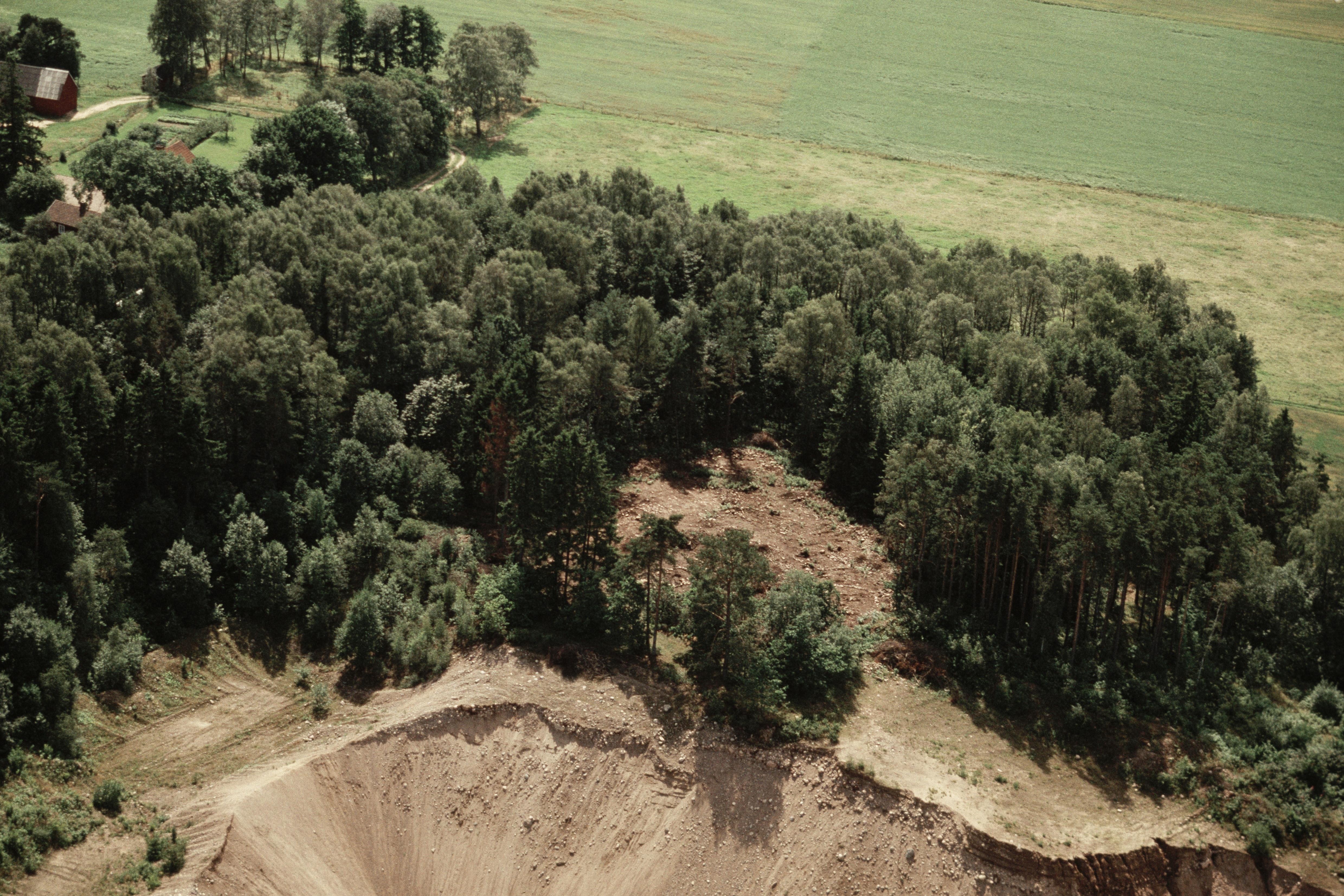 Beskrivning: Ledsberget gravfält RAÄnr Larv 208:1 och 209:1 (fossil åkermark) vid ett sandtag. Bilden är tagen mot (väderstreck): SV