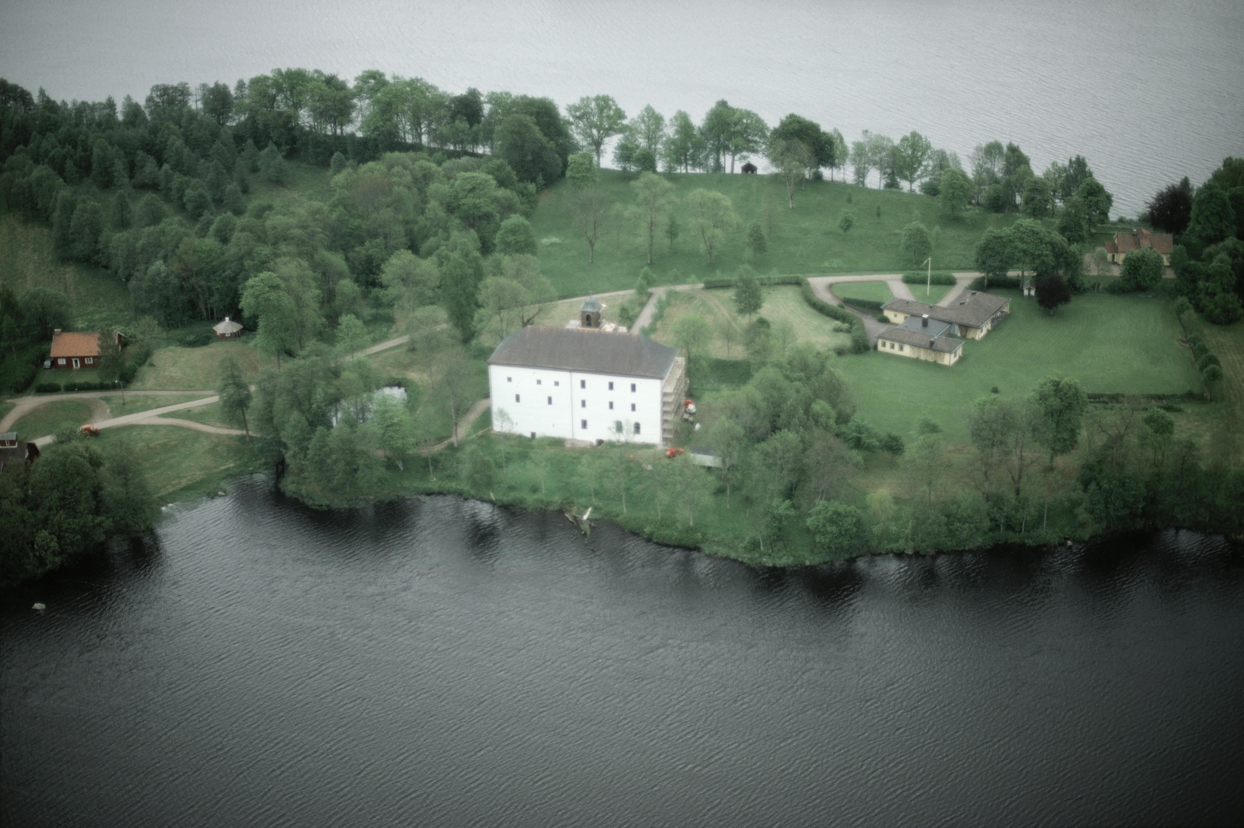 Beskrivning: Slottet Torpa Stenhus RAÄnr Länghem 36:1 vid Torpasjön i Åsunden. Bilden är tagen mot (väderstreck): OSO