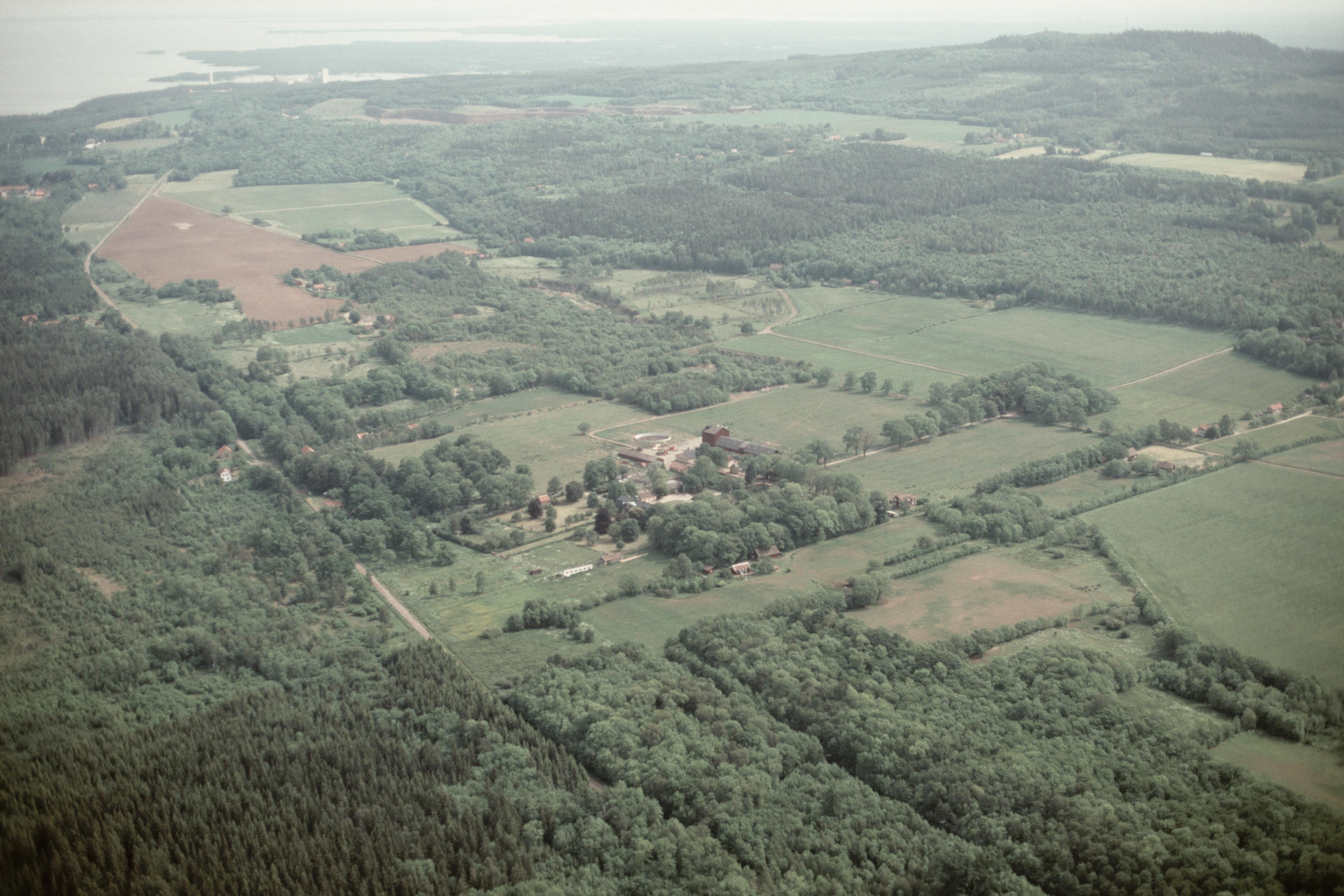 Beskrivning: Trolmens herrgård vid bildens mitt. I bildens övre del Hällekis bruk i Österplana socken. Bilden är tagen mot (väderstreck): NO