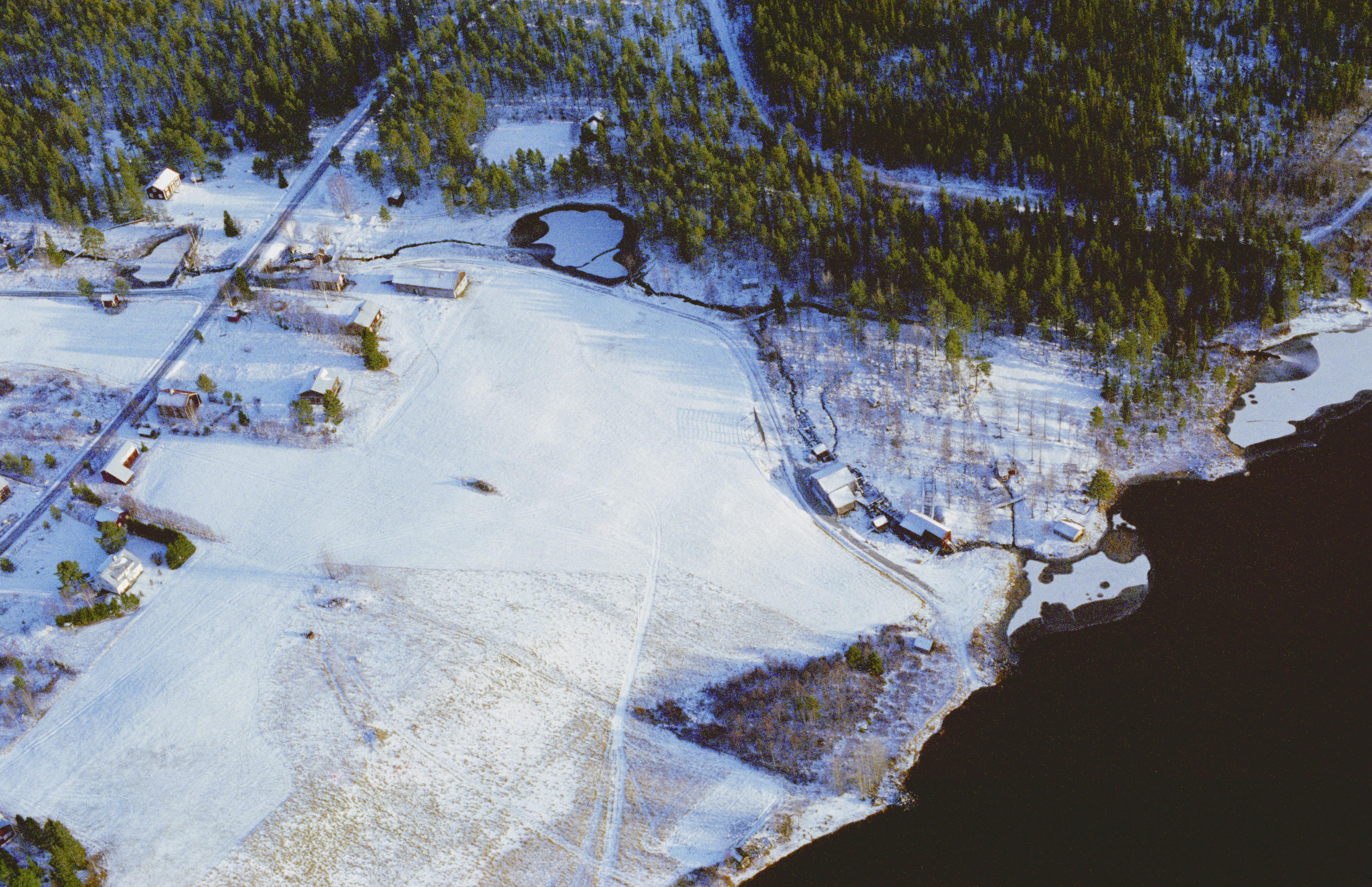 Beskrivning: Byn Torvsjö (Derhvedslaedtie) vid Torvsjön i Torvsjöåns dalgång. Till höger om bildens mitt Torvsjö kvarnar RAÄnr Åsele 20:1 vid Kvarnbäckens utlopp i Torvsjön. Bilden är tagen mot (väderstreck): SO