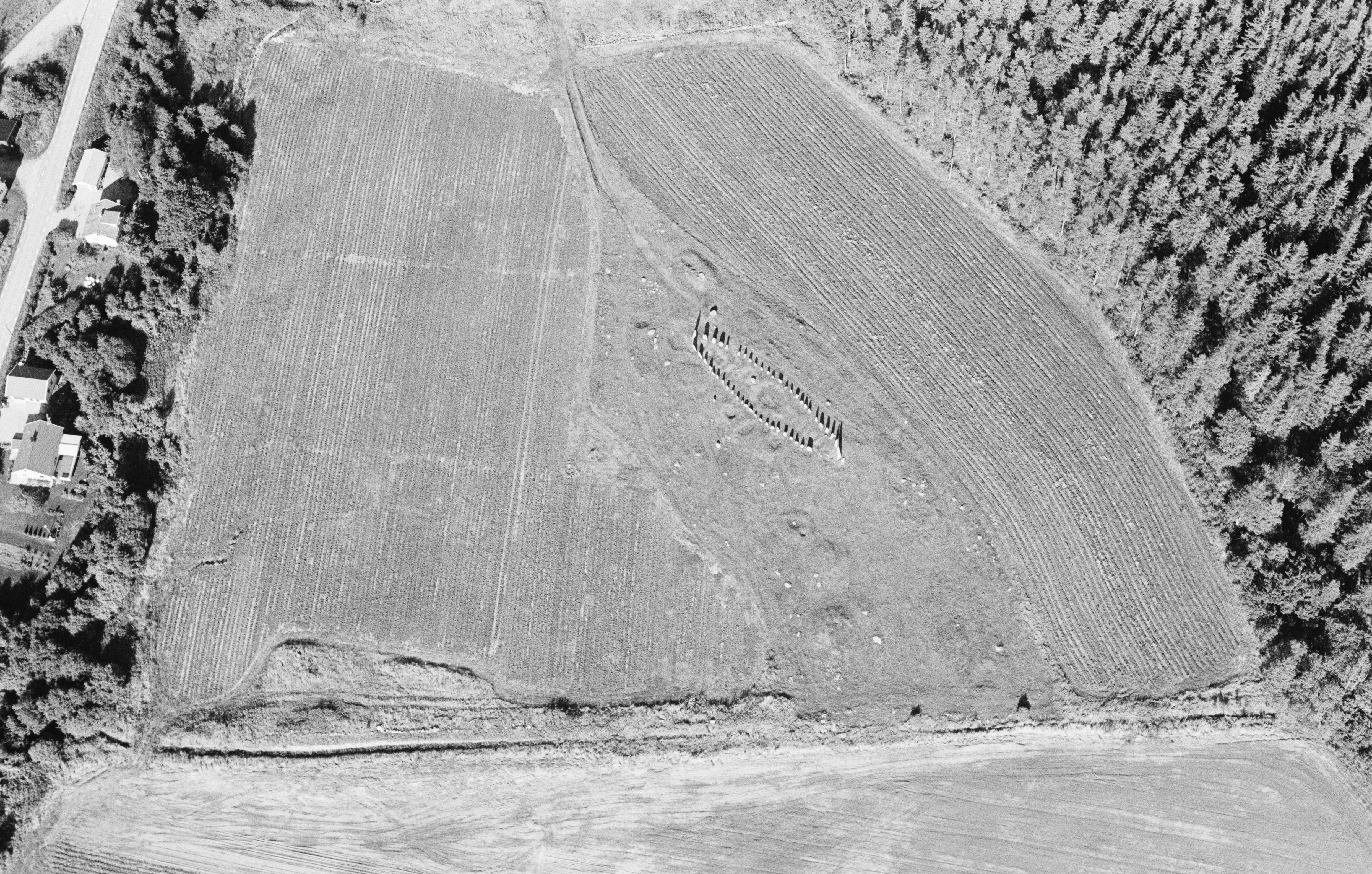 Beskrivning: Blomsholms by och herrgård. Gravfält med skeppssättning RAÄnr Skee 343:1 och hällristning Skee 1563:1 till höger om bildens mitt. Bilden är tagen mot (väderstreck): NO