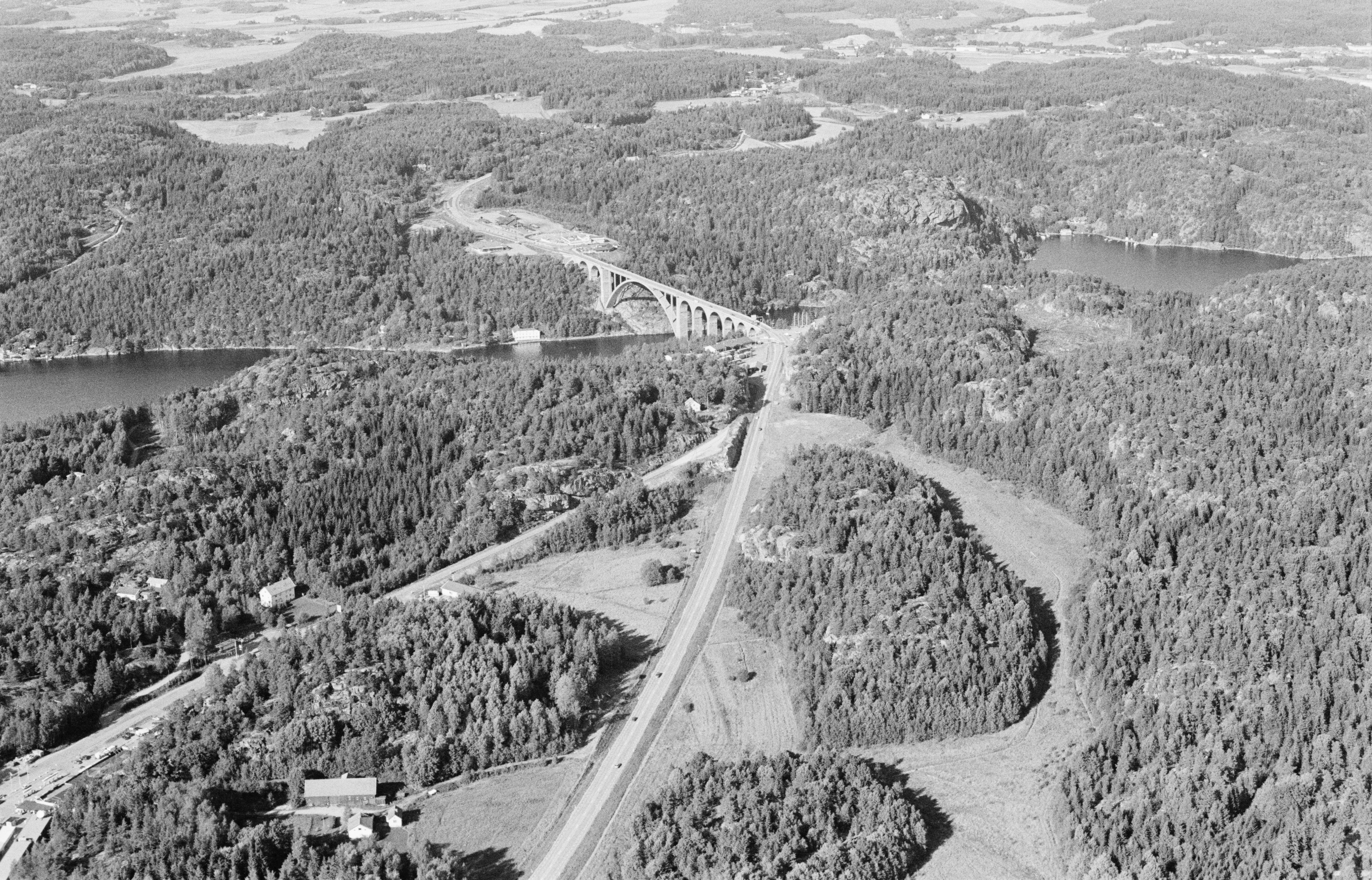 Beskrivning: Svinesundsbron på landgränsen mot Norge (i bildens övre del). Sedan 1600-talet gränsort med befästningsanläggningar, bl.a. RAÄnr Hogdal 474. Bilden är tagen mot (väderstreck): NO