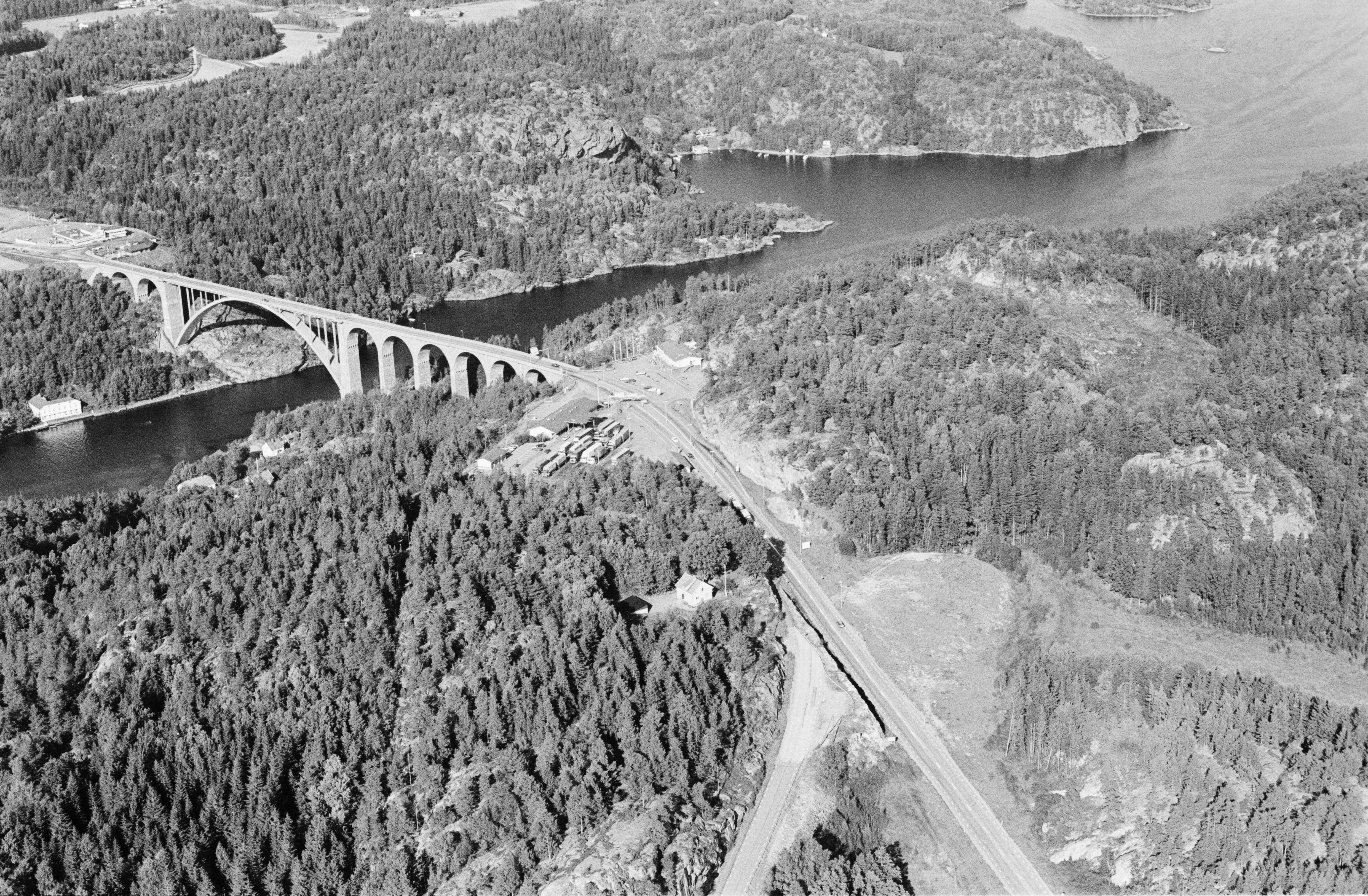 Beskrivning: Svinesundsbron på landgränsen mot Norge (i bildens övre del). Sedan 1600-talet gränsort med befästningsanläggningar, bl.a. RAÄnr Hogdal 474. Bilden är tagen mot (väderstreck): NO