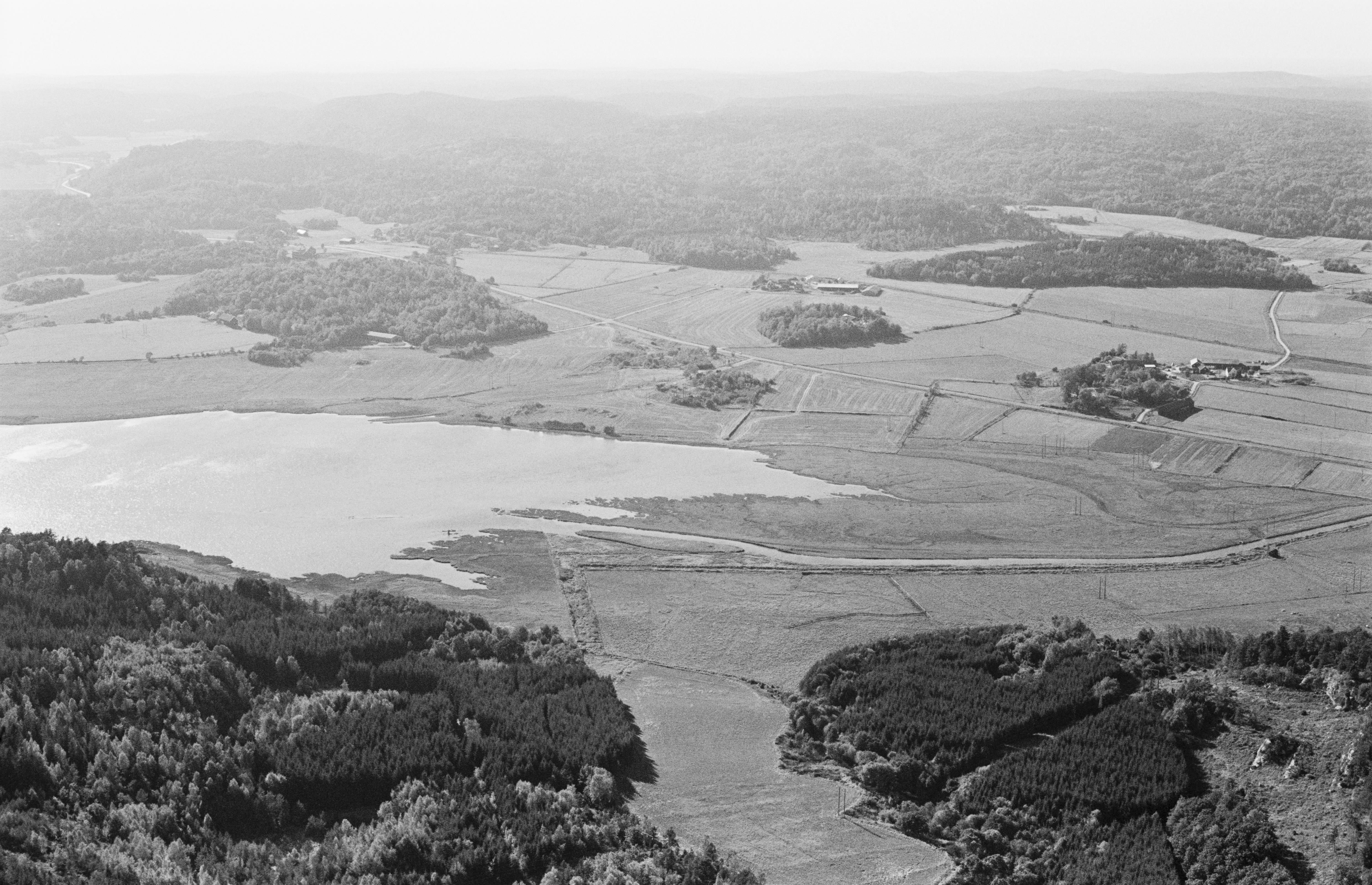 Beskrivning: Vid Gläborg i norra delen av havsviken Färlevfjorden / Gullmarn. Stensättning RAÄnr Håby 33:1 vid bildens mitt. I bildens övre del Färlev i Bro socken. Bilden är tagen mot (väderstreck): V
