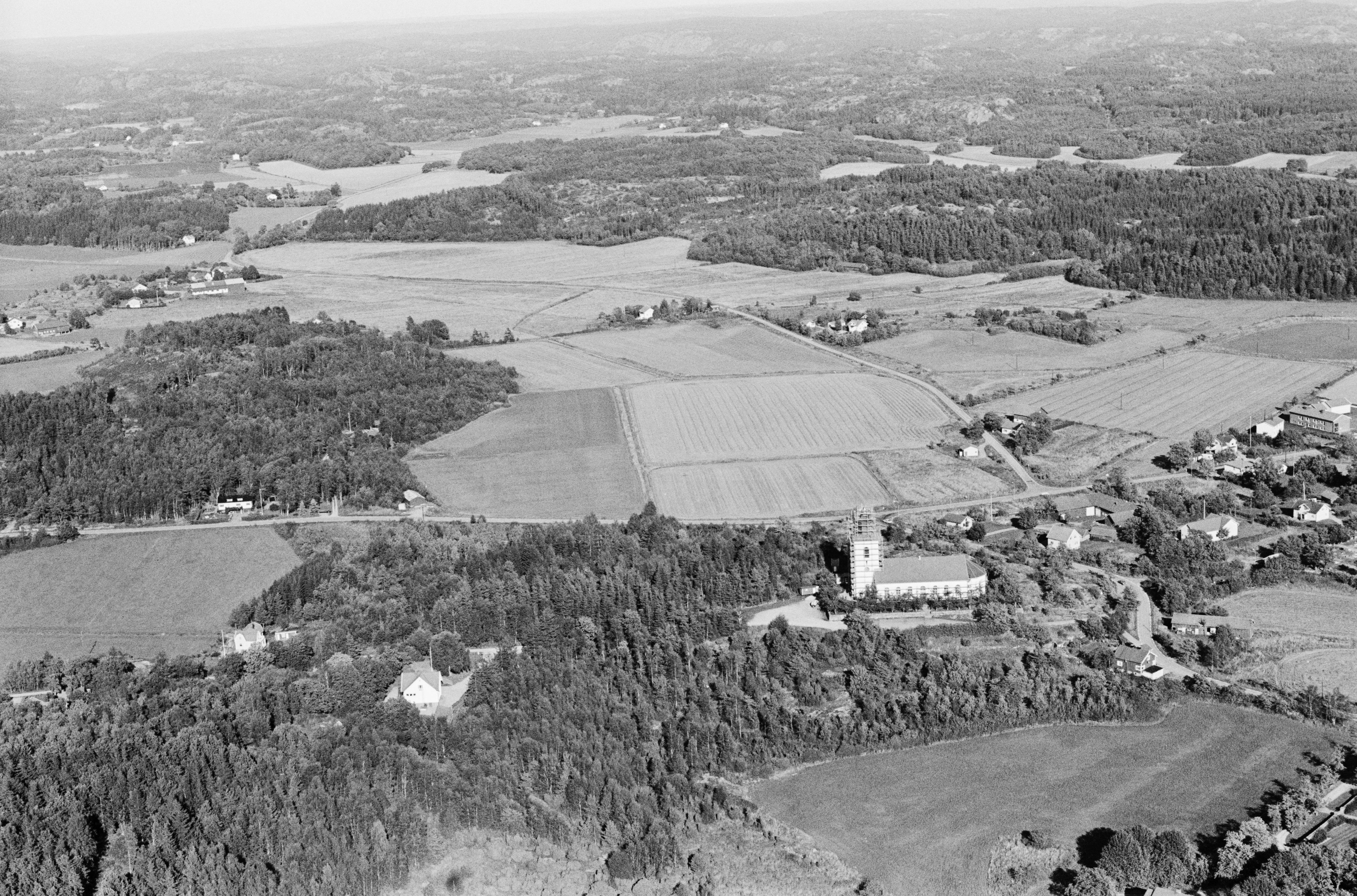 Beskrivning: Tossene kyrka och kyrkby. Bilden är tagen mot (väderstreck): NO