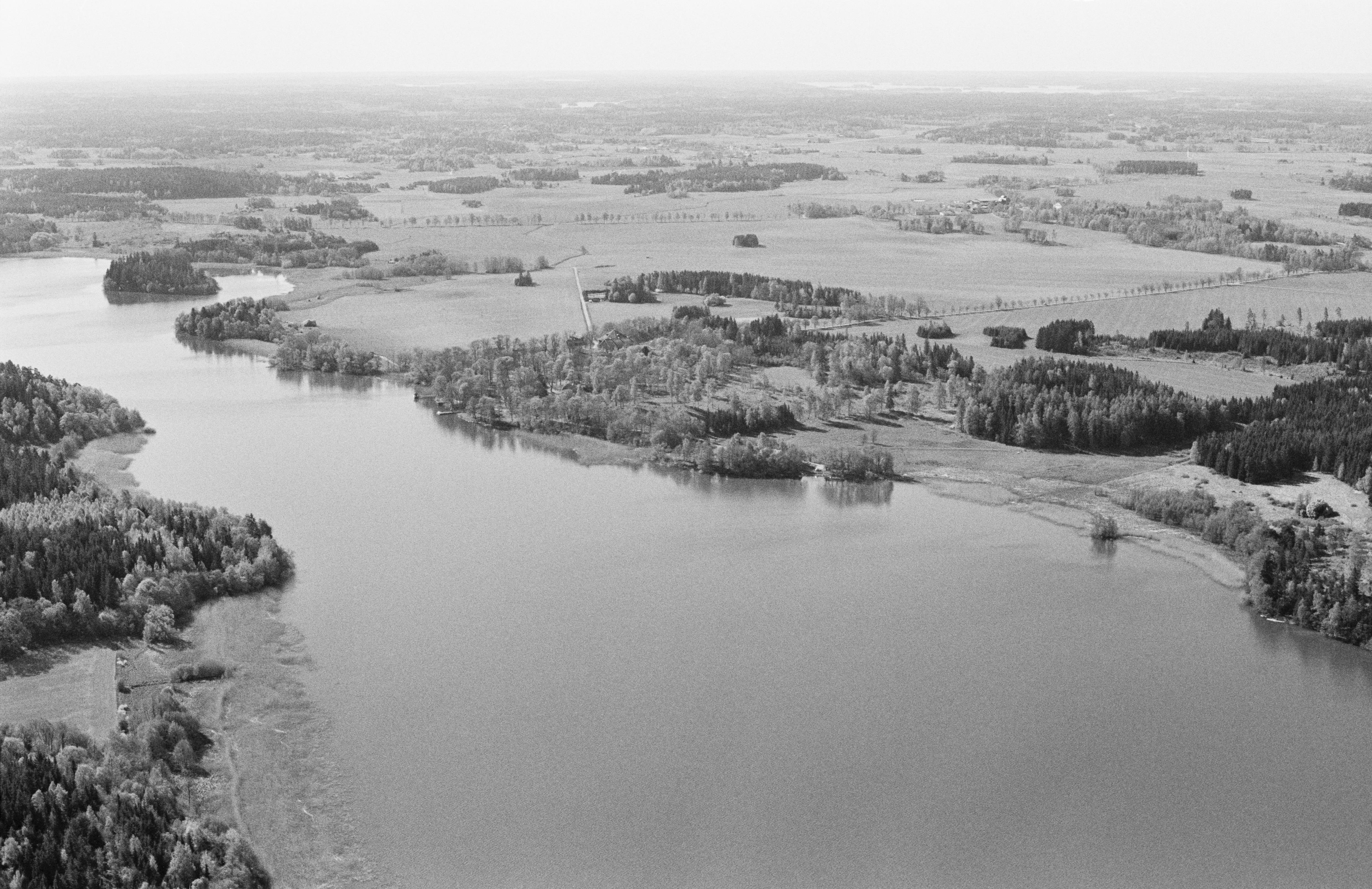 Beskrivning: Håtunaviken i Mälaren. Viken markerar gränsen mellan socknen Håtuna och Sankt Per (till vänster). Till höger om bildens mitt Signhildsbergs kungsgård med husgrund Fornsigtuna RAÄnr Håtuna 101:1, gravfält Håtuna 99:1 m.fl. Bilden är tagen mot (väderstreck): SSO