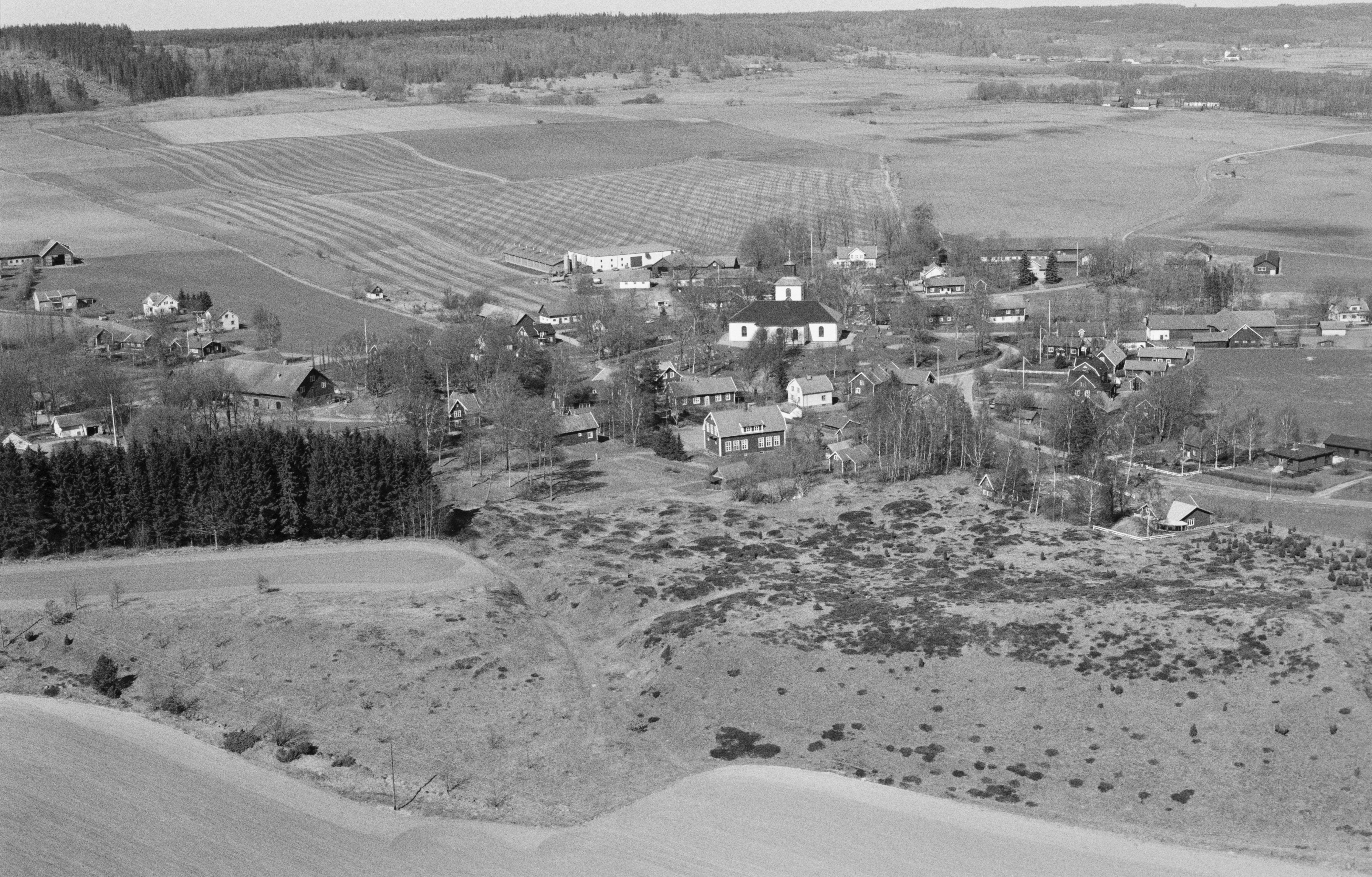 Beskrivning: Dimbo kyrkby. Dimbo-Ottravads kyrka och gravfält RAÄnr Dimbo 6:1 vid bildens mitt. Bilden är tagen mot (väderstreck): NV