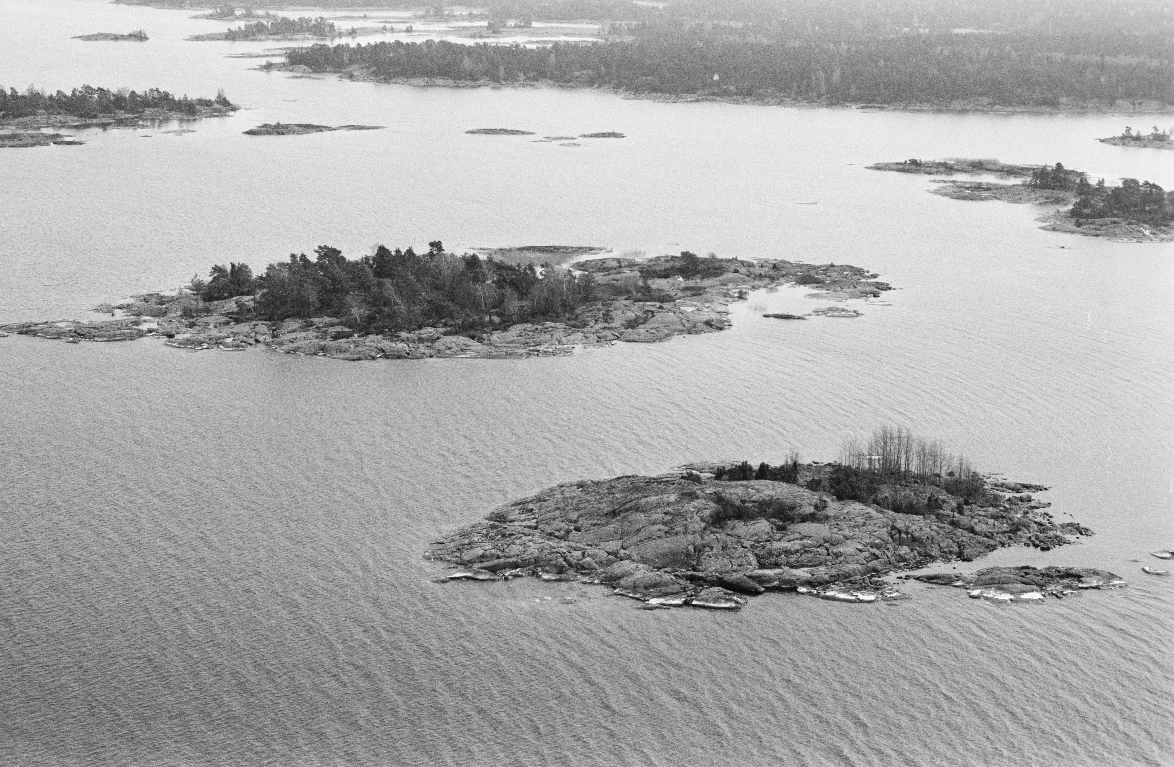 Beskrivning: Ekens skärgård i sjön Vänern. Fornlämningsmiljö med spridda bronsåldersrösen, bl.a. röse RAÄnr Otterstad 86:1 på Stenholmen i bildens nedre del. Pirum i bildens övre kant. Bilden är tagen mot (väderstreck): SO