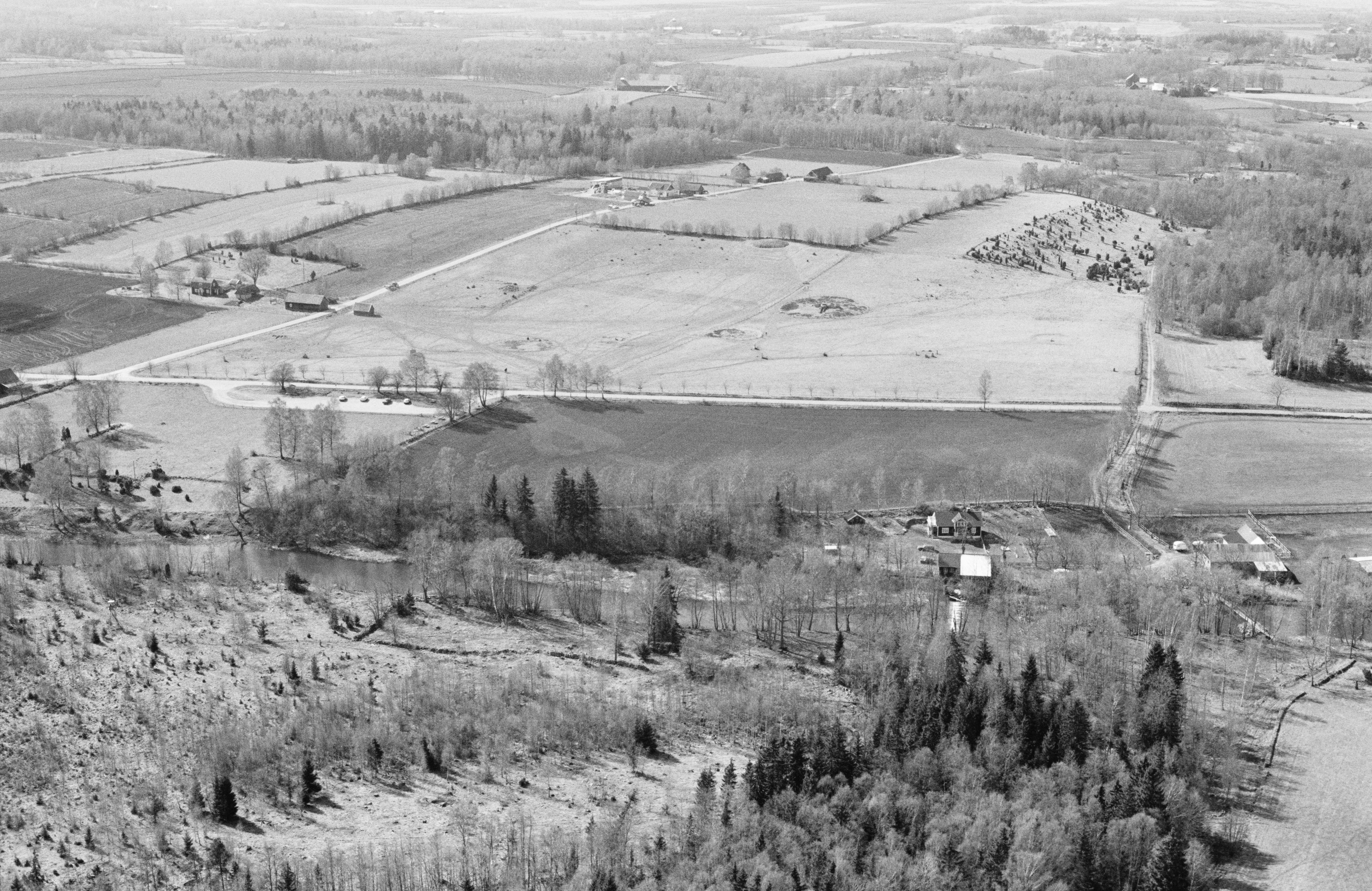 Beskrivning: Ån Slafsan. Gravfält, hällristningar, röse m.m. RAÄnr Hornborga 22:1, 27:1-4, 29:1-3, 31:1-5 (stenkammargrav Gigerugnen / Girommen med hällristningar och stenkrets), 32:1-2 m.fl. Bilden är tagen mot (väderstreck): V