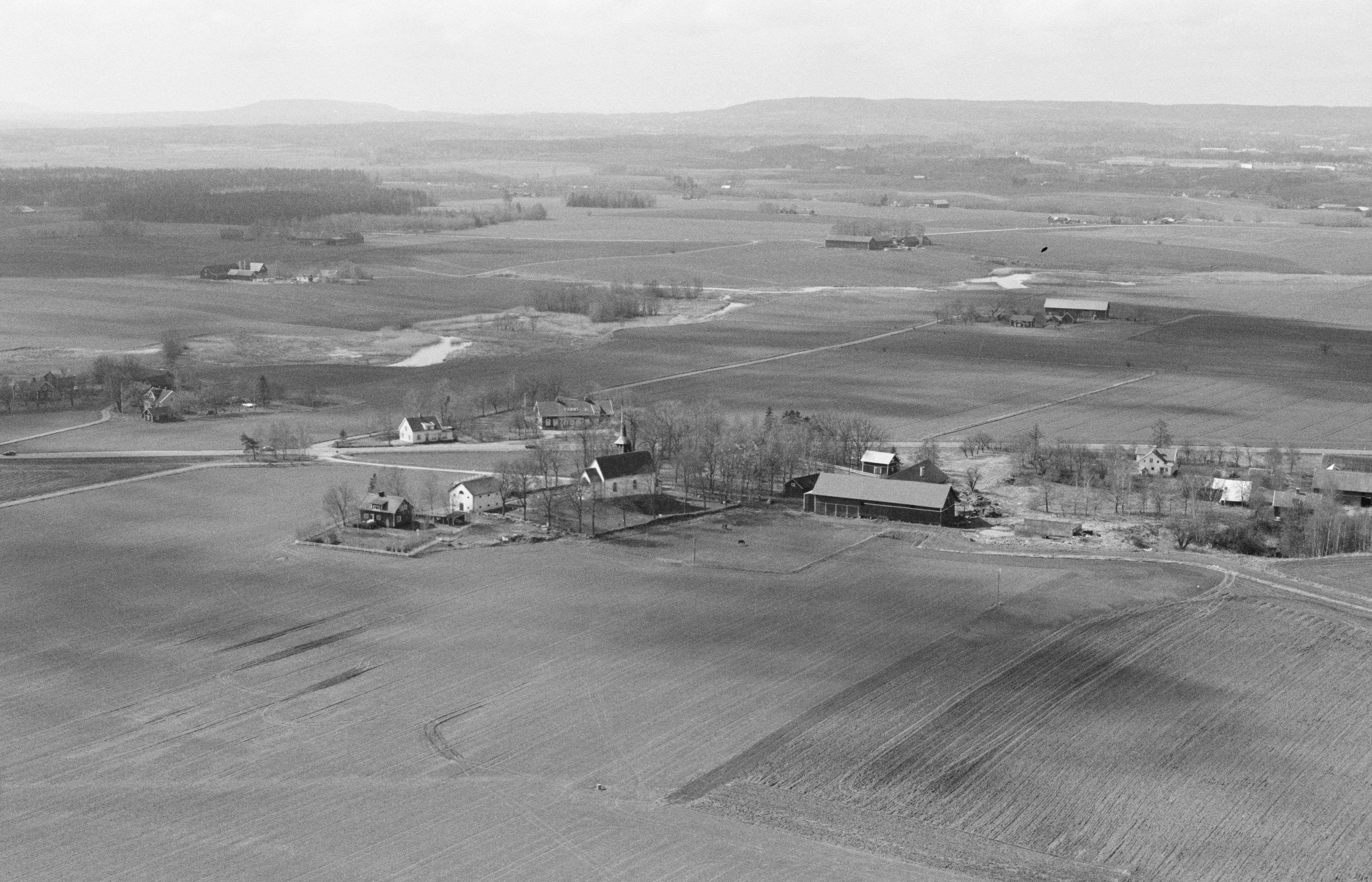 Beskrivning: Forsby kyrka, kyrkby och sockenmagasin. Kyrkan står på gravhög RAÄnr Forsby 48:1. Bilden är tagen mot (väderstreck): SV