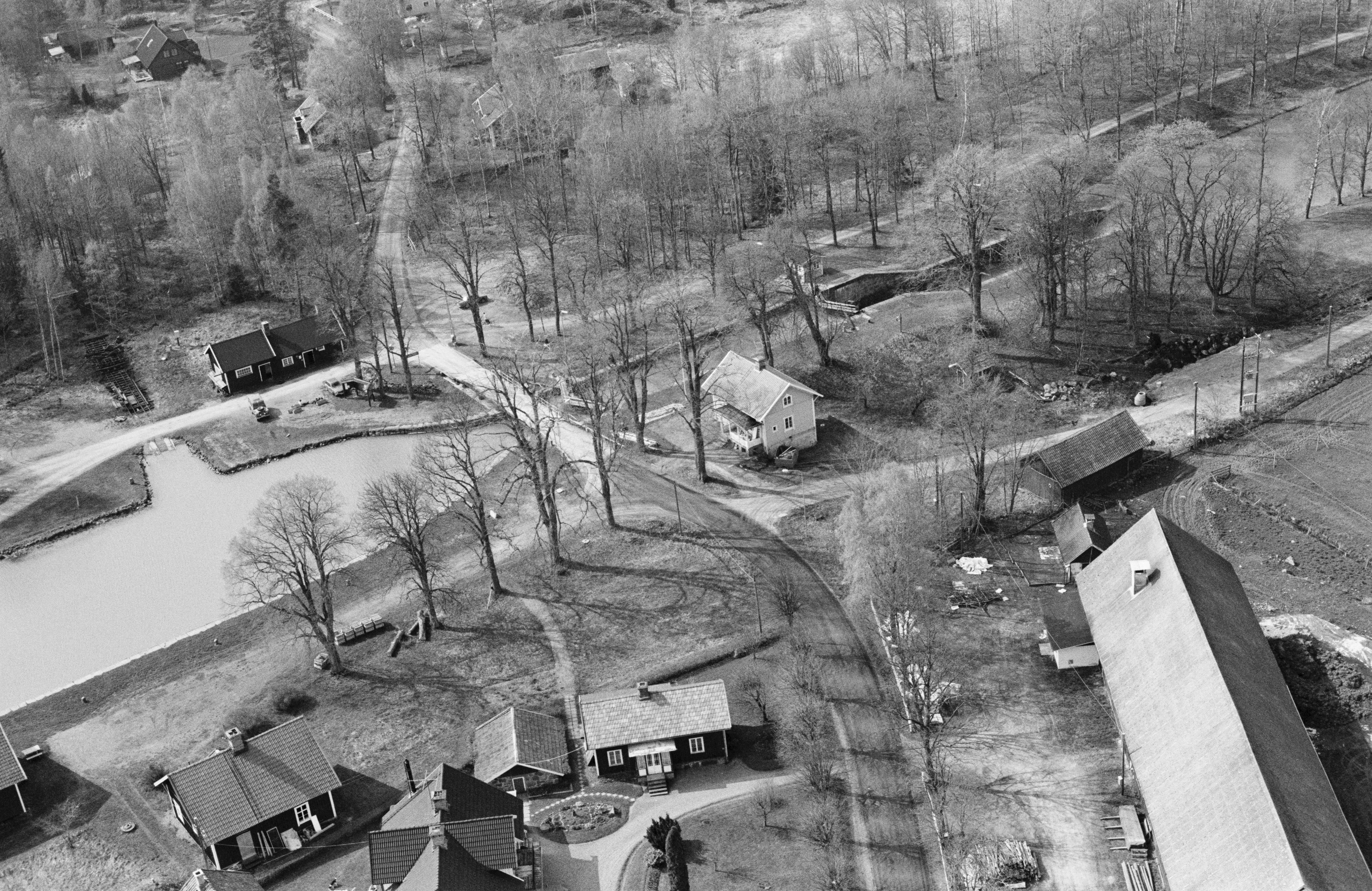 Beskrivning: Göta kanal, sluss vid Hajstorps by. Fyndplats RAÄnr Fredsberg 18:1 vid bildens mitt. Bilden är tagen mot (väderstreck). V