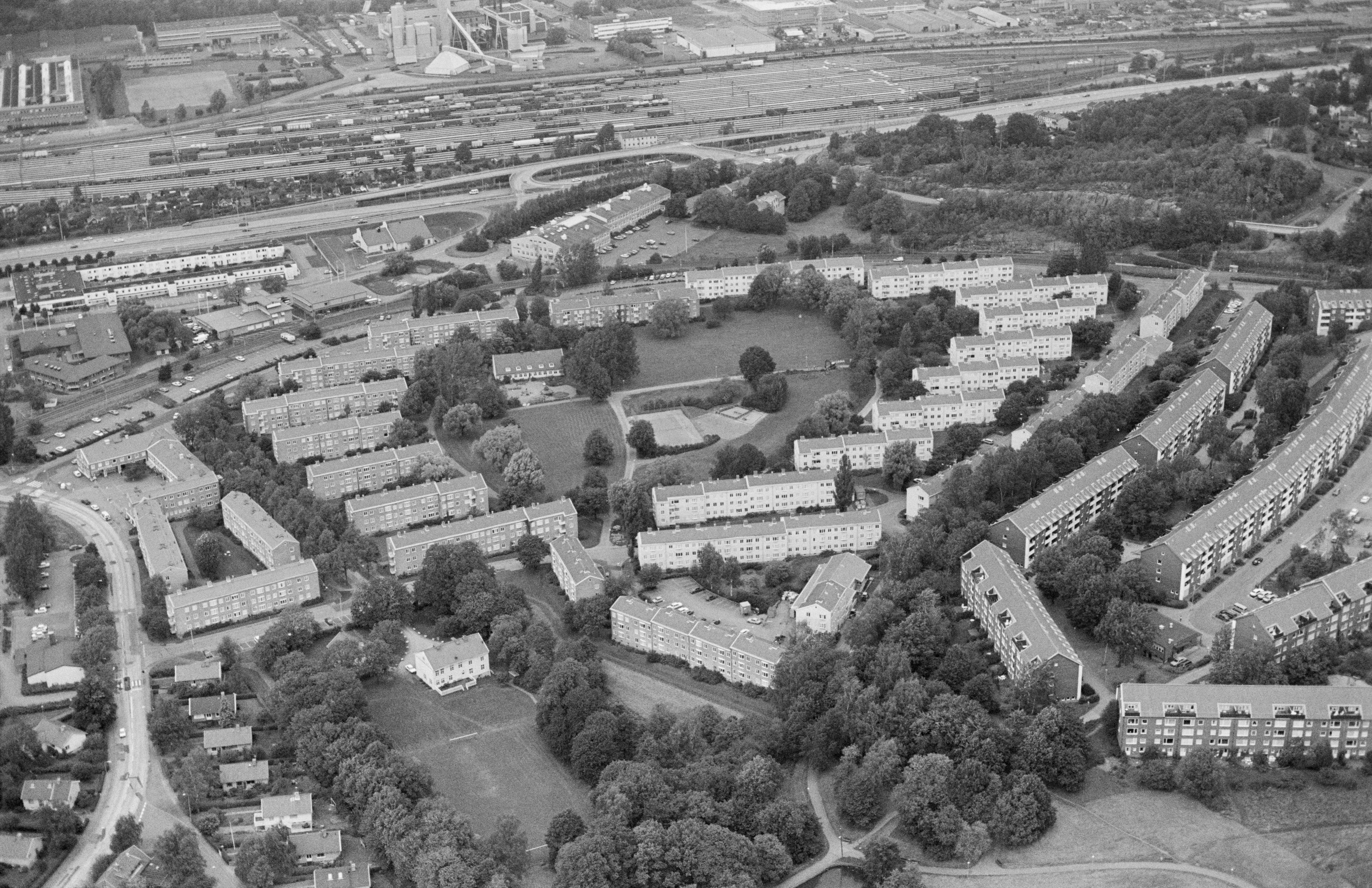 Beskrivning: Anmärkning (övrig): Riksintresse-nr/namn: O2:9 - Västra Torpa. Socken: Göteborg. Motivering: Bostadsområde med flerbostadshus som är ett av de första där 1940-talets bostadssociala program prövades och som visar på tidens stadsplanemässiga och arkitektoniska idéer. - Uttryck för riksintresset: Planläggning och bebyggelsen från 1946, med integrerad manbyggnad och allé tillhörande Vidkärrs gård. Runt detta en ring av gator och öst-västligt orienterade trevåniga lamellhus inbäddade i grönska. Den enhetligt utformade bebyggelsen med fasader i gult tegel eller grov spritputs, präglade av traditionellt hantverk i detaljer som portaler, burspråk och takfot. Till området hör både ett litet köpcentrum, Kaggeledstorget,(…) Texten i detta fält har förkortats vid migrering till e-arkivet. Se filbilagan extra.xml för fullständig information under note_archivist. Beskrivning: Västra Torpa bostadsområde i stadsdelen Sävenäs, Göteborg. Bilden är tagen mot (väderstreck): N Fotosyfte: Flygbildsdokumentation