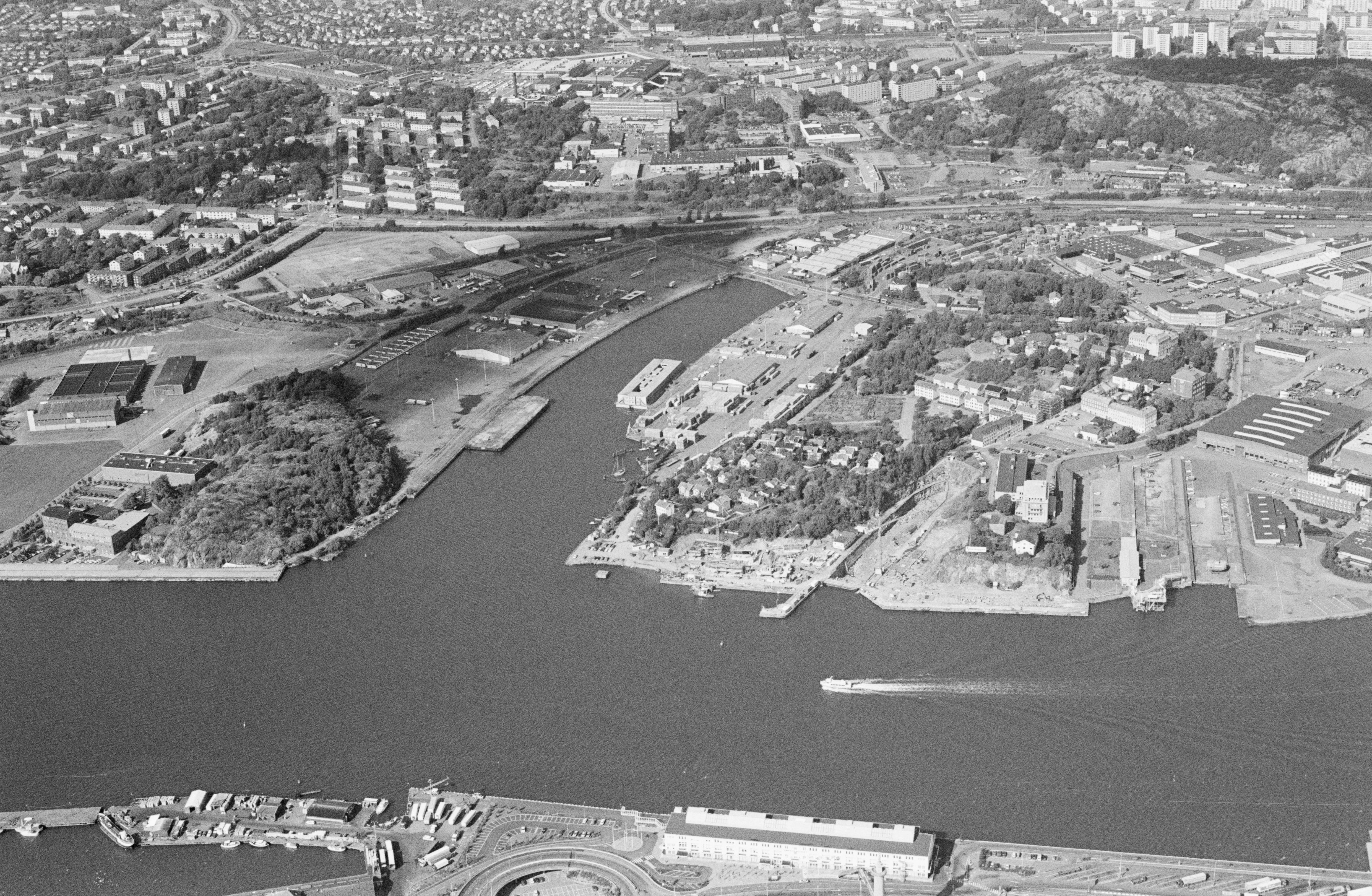 Beskrivning: Lindholmens varv vid Göta älv i Göteborgs stad. Bilden är tagen mot (väderstreck): NNO