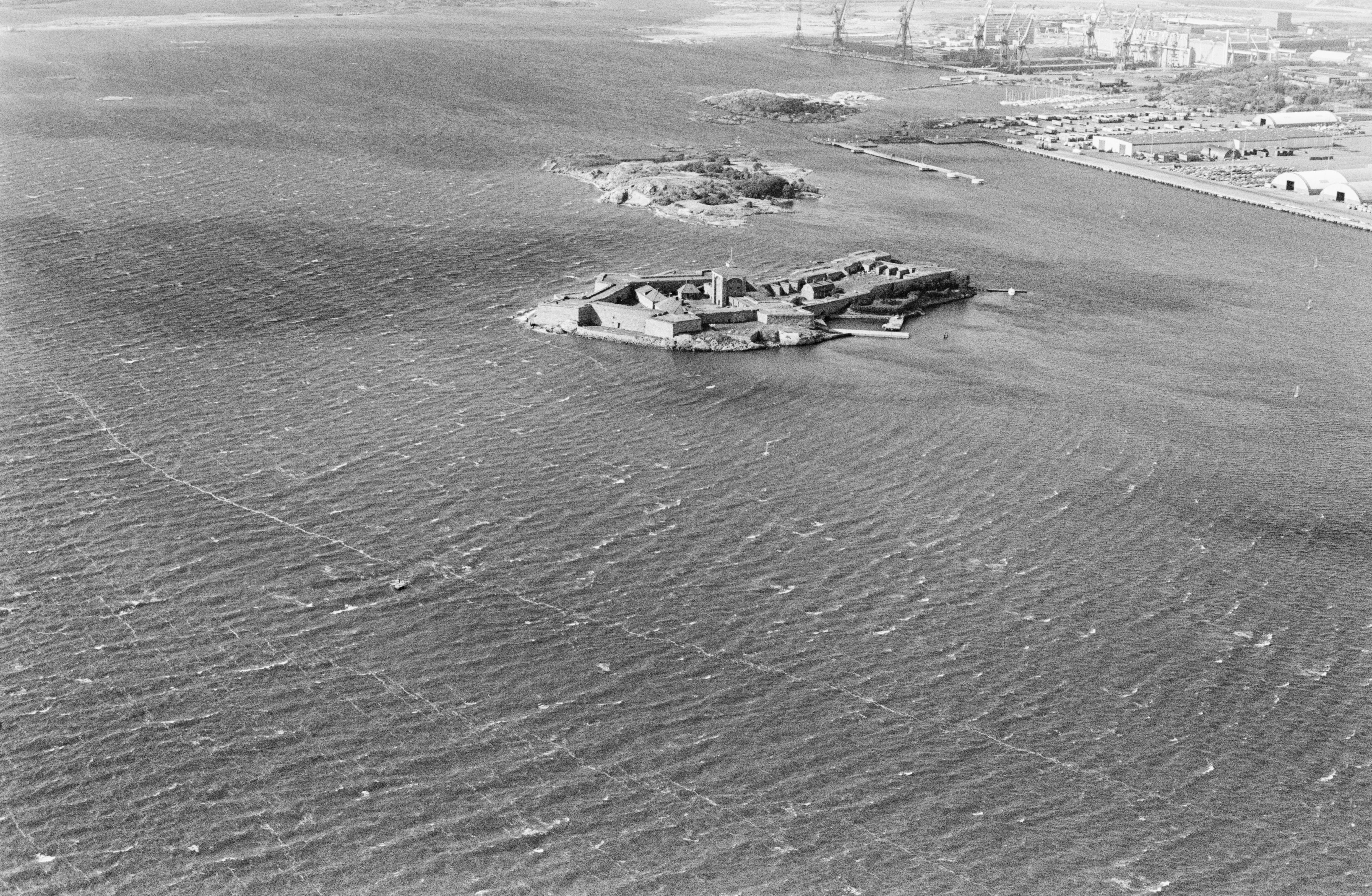 Beskrivning: (Tid. Västra Frölunda socken). Aspholmarna i Älvsborgsfjorden vid inloppet till Göteborgs stad. Nya Älvsborgs fästning RAÄnr Västra Frölunda 248:1. Bilden är tagen mot (väderstreck): NV