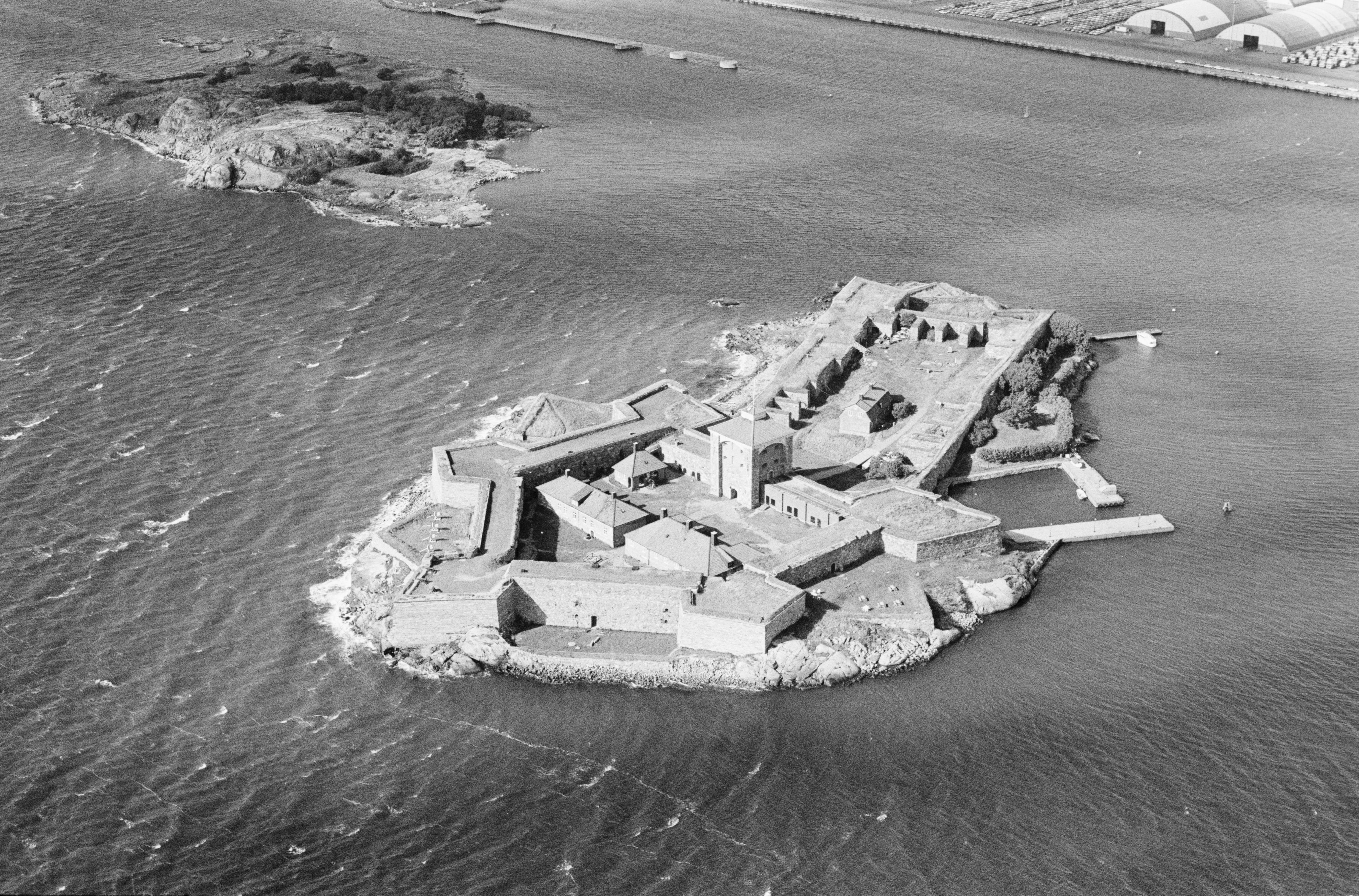 Beskrivning: (Tid. Västra Frölunda socken). Aspholmarna i Älvsborgsfjorden vid inloppet till Göteborgs stad. Nya Älvsborgs fästning RAÄnr Västra Frölunda 248:1. Bilden är tagen mot (väderstreck): NV