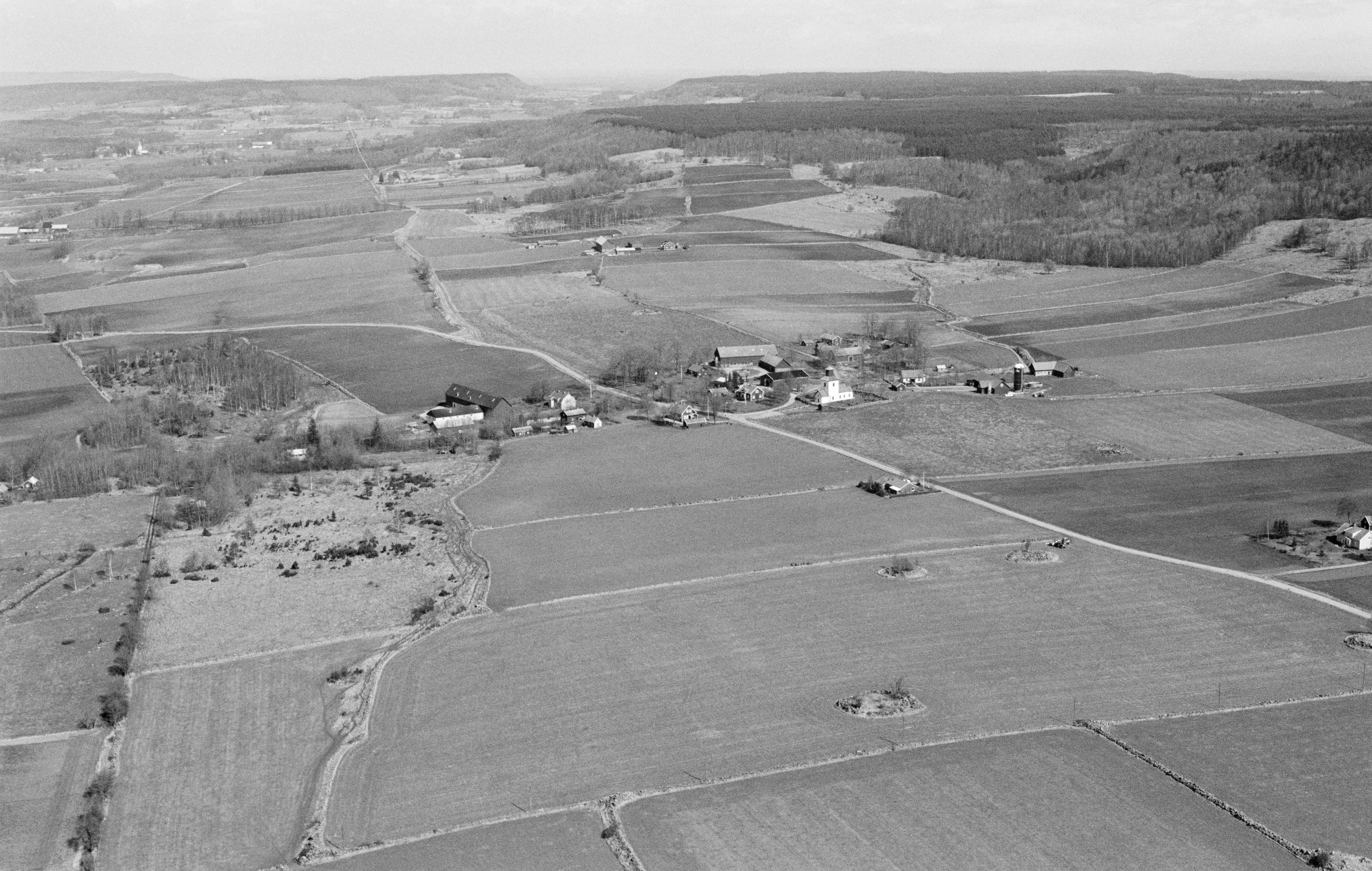 Beskrivning: Mularps kyrka och kyrkby vid bildens mitt. Bilden är tagen mot (väderstreck): NNO