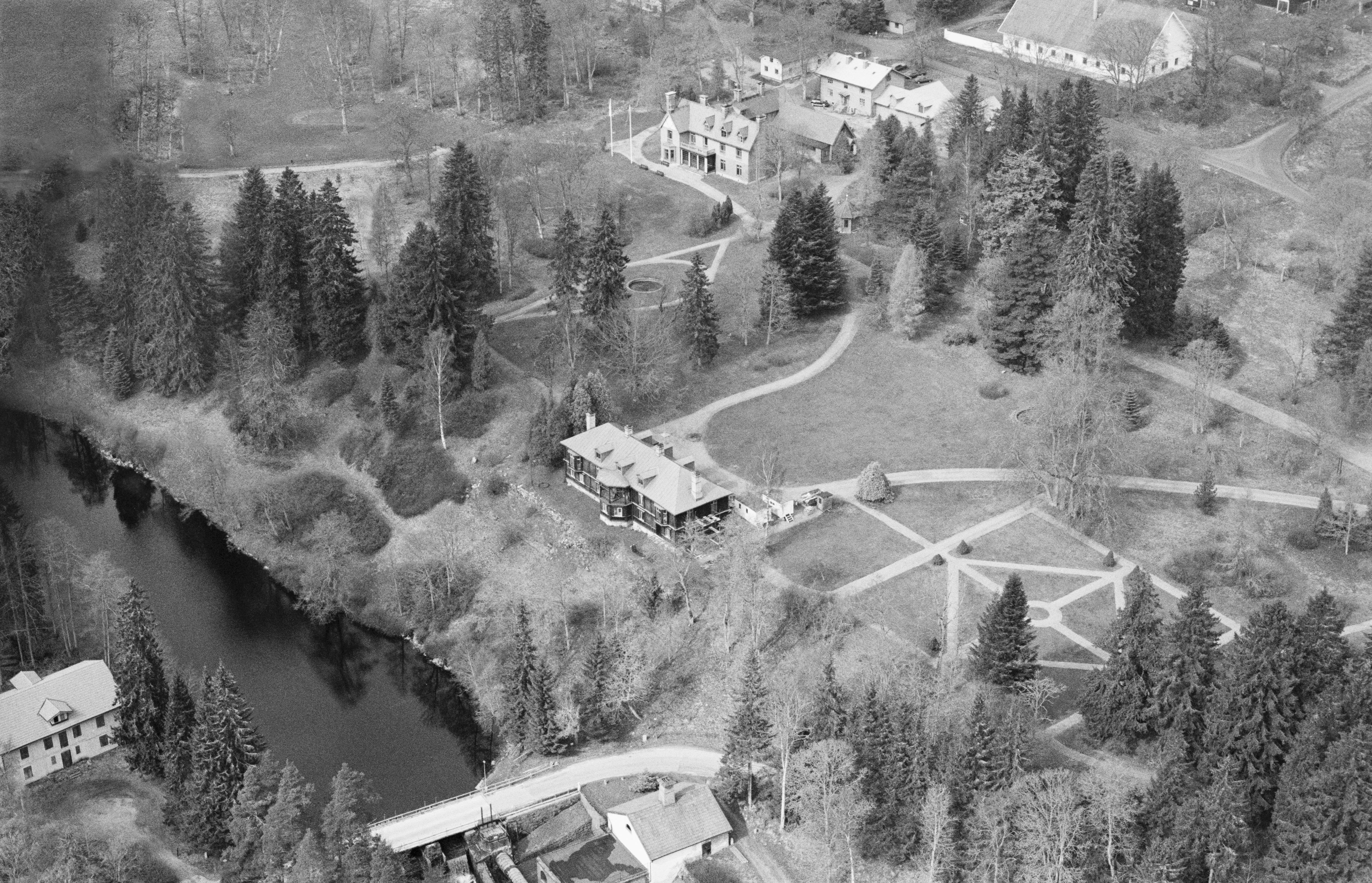 Beskrivning: Ryfors bruk vid ån Tidan, Ryfors herrgård, Ryfors golfbana. Bilden är tagen mot (väderstreck): NV