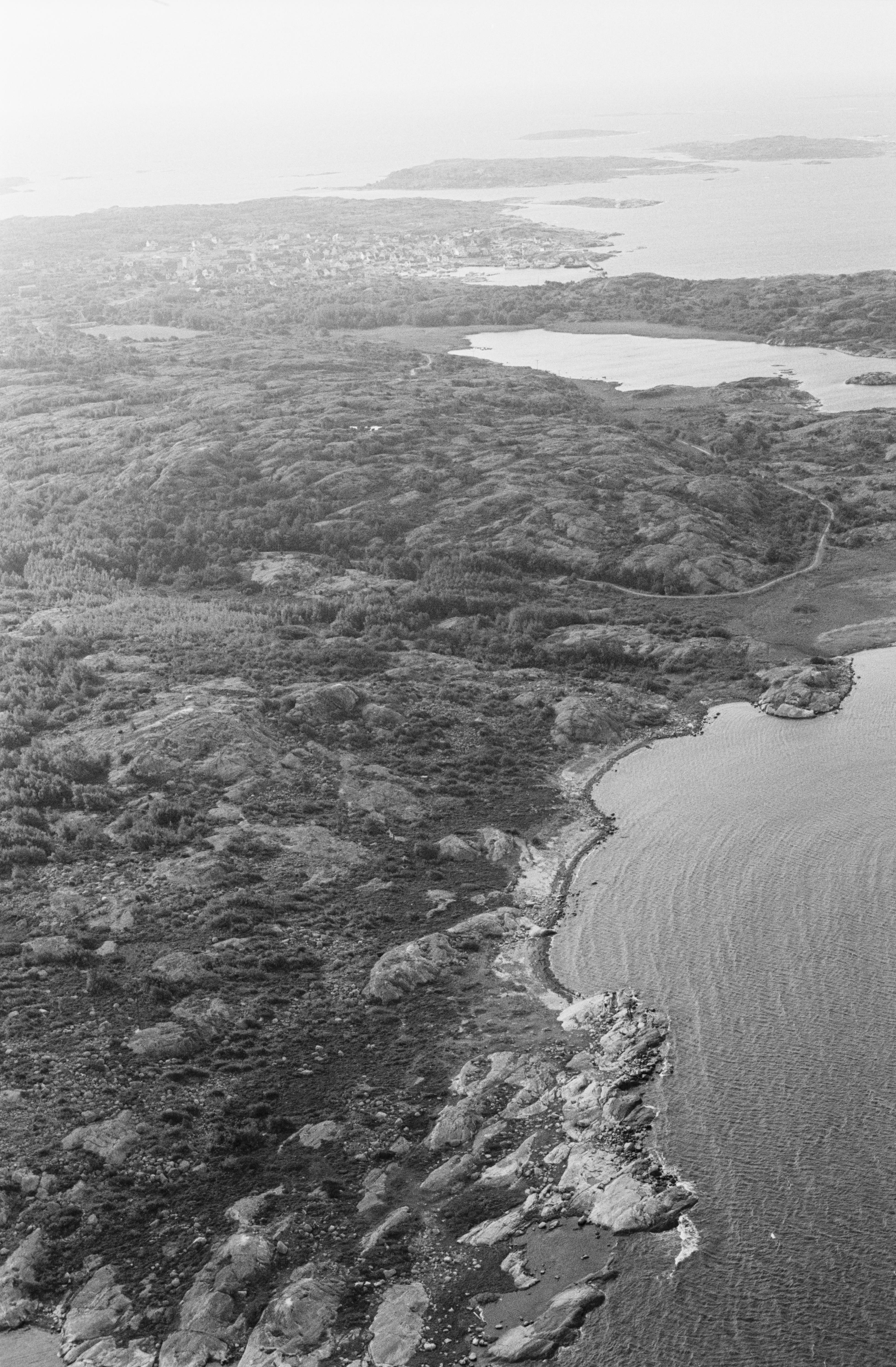 Beskrivning: Vidingen, norra udden på Vrångö med tomtningar RAÄnr Styrsö 45:1 och 48:1. I bildens övre del Vrångö tätort. Bilden är tagen mot (väderstreck): S