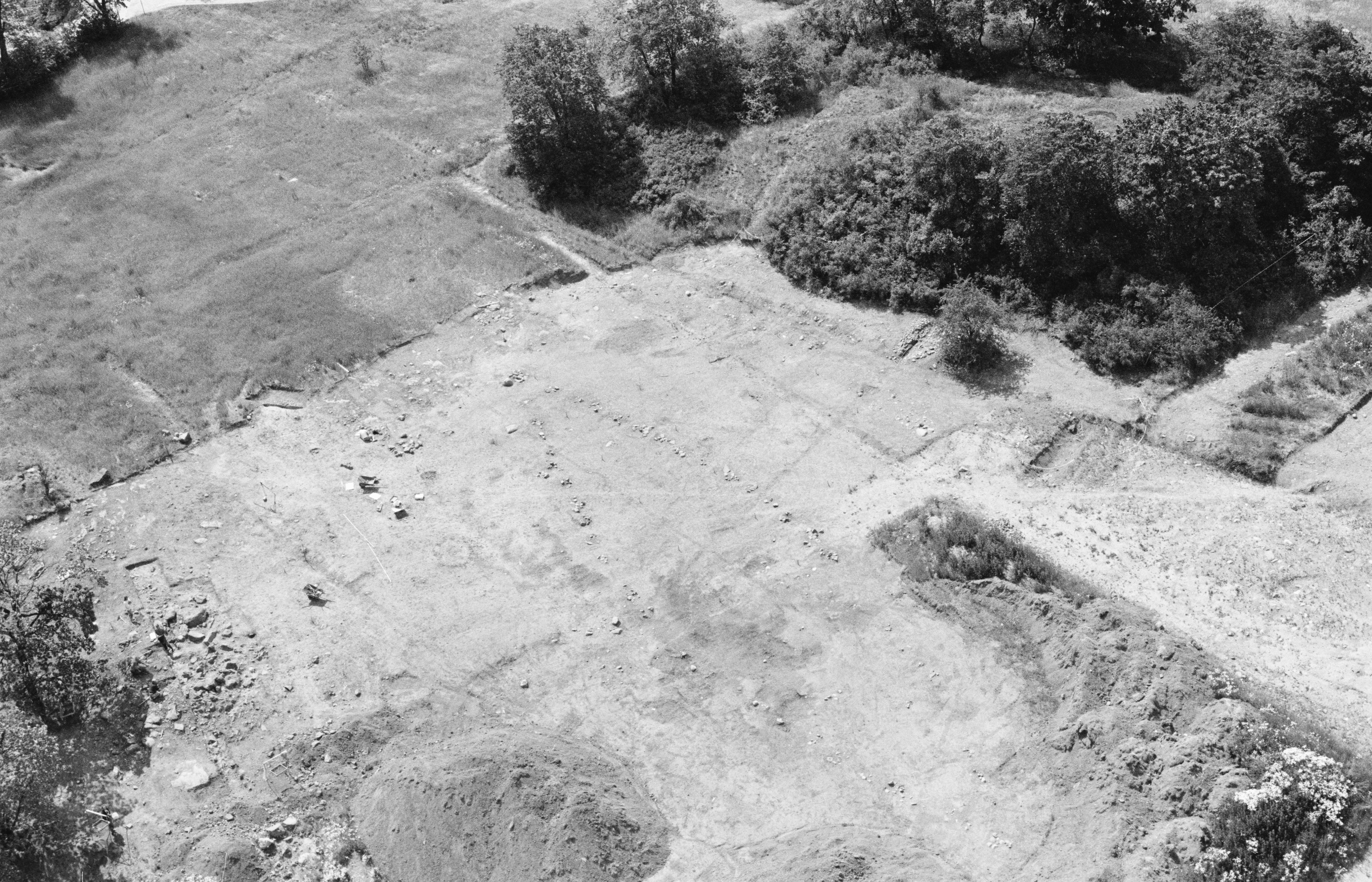 Beskrivning: Linköpings stad vid Stångebro i stadsdelen Kallerstad. Arkeologisk undersökning av skeppssättning vid Gumpekullastenen RAÄnr Linköping 143:1. Bilden är tagen mot (väderstreck): SSV