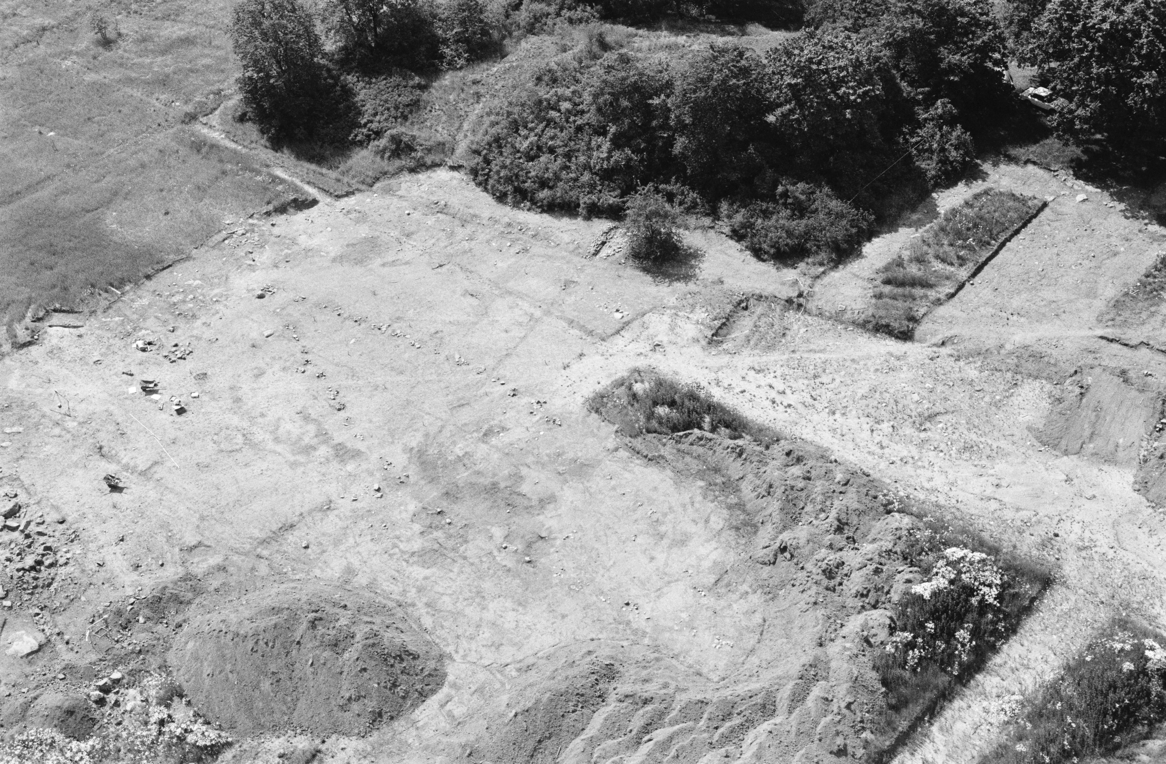Beskrivning: Linköpings stad vid Stångebro i stadsdelen Kallerstad. Arkeologisk undersökning av skeppssättning vid Gumpekullastenen RAÄnr Linköping 143:1. Bilden är tagen mot (väderstreck): SV